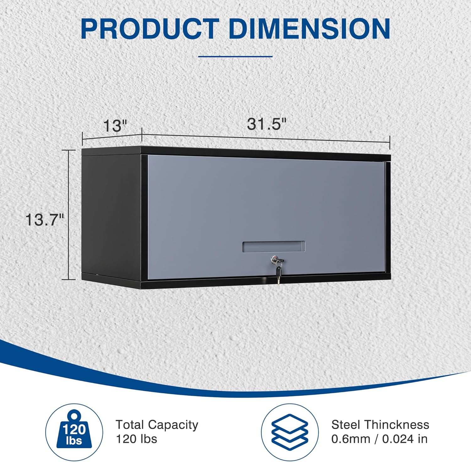 Metal Storage Cabinet Black&Gray Wall Cabinets with Locking Door - Wall Mounted Storage Cabinet for Garage Warehouse Home Office - Assembly Required
