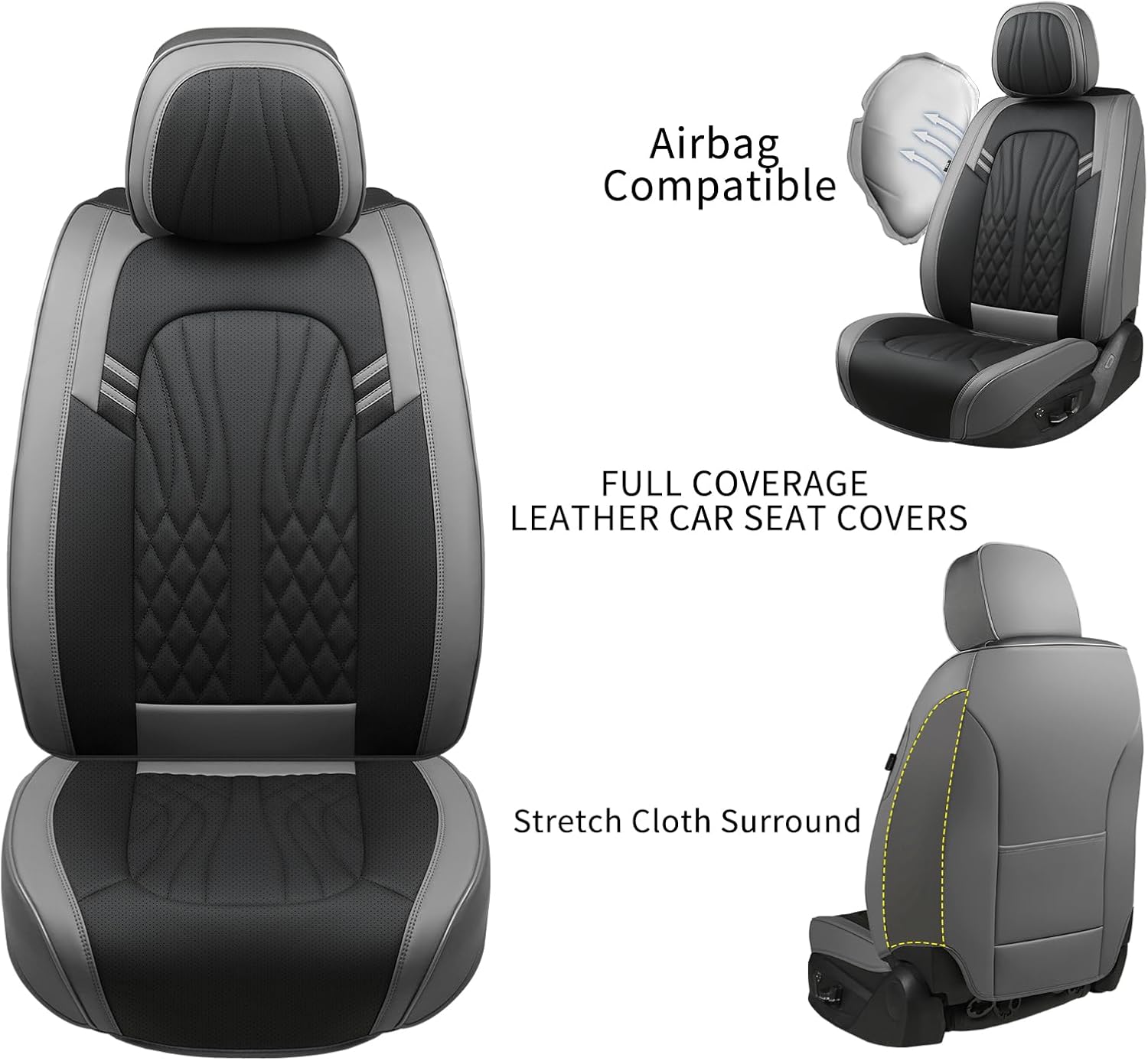 Leather Car Seat Covers,Breathable and Waterproof Faux Leather Automotive Seat Covers for Cars SUV Truck Sedan,Universal Driver Seat Cover Grey&Black