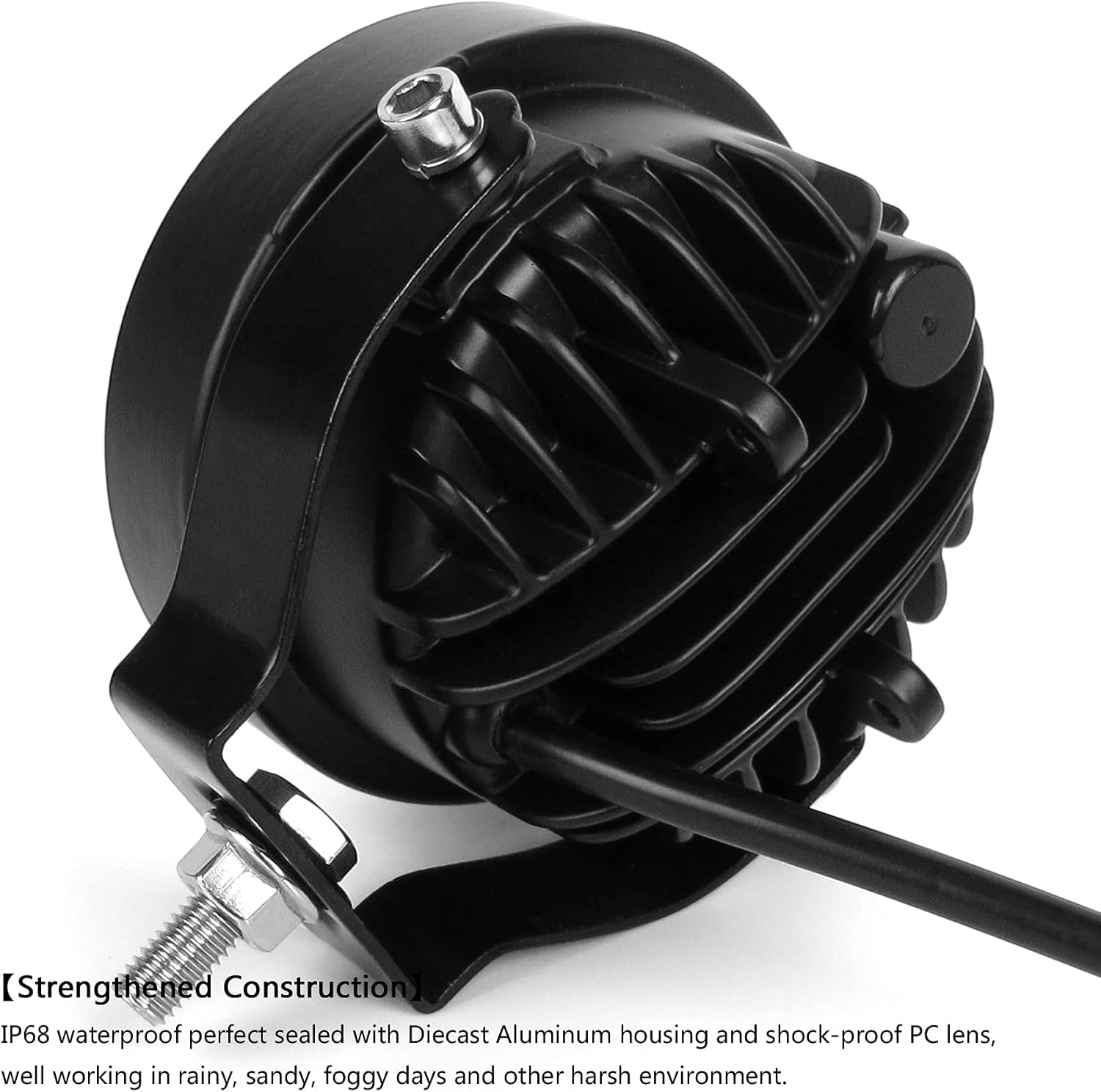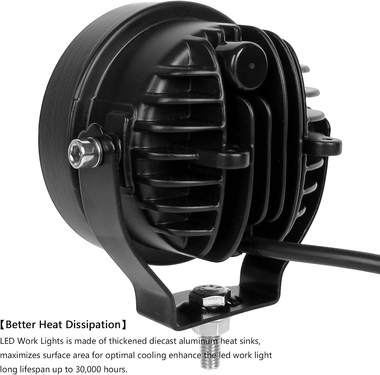 - ăSUPER BRIGHTNESSă Compare with the same size another work light,this kind light have the most biggest real wattage,advanced High Power Led Chip give out bright and White ray for clear visibility. special designed lamp cup leads to wider illumination range, allowing you to see the left and right side clearly.
