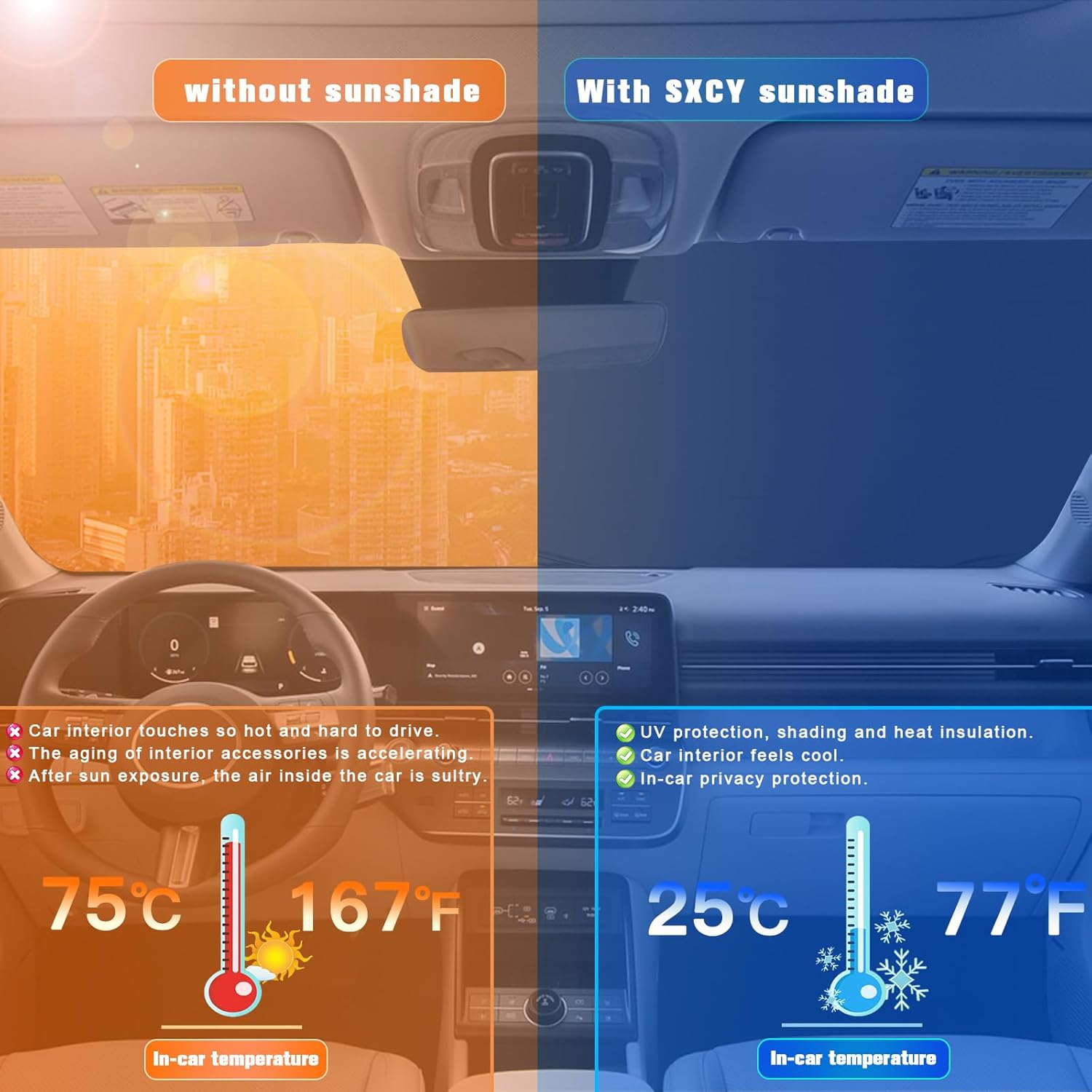 - 2.Sun Protection: Solve your concerns about parking for a long time under the scorching sun,prevent the car's interior from getting sunburned and extend your car interior accessoriesâlife