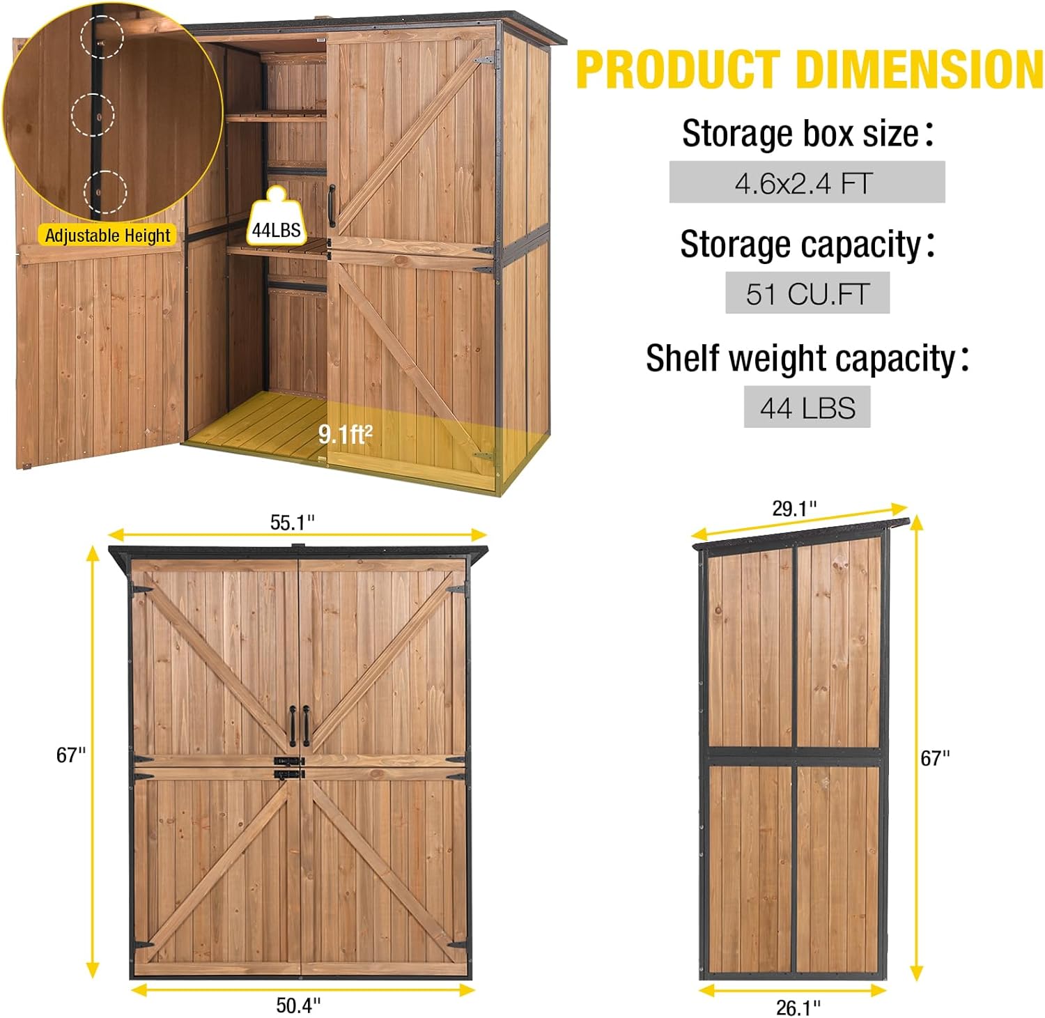- Ample Storage: 4.6 x 2.42ft space perfect for safely storing gardening essentials, outdoor equipment, and more. Keep your space organized and clutter free with this practical storage solution