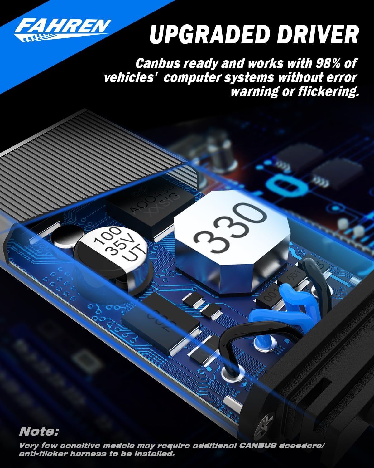FAHREN 9005 Driving Bulbs 46000 Lumens Super Bright 9005 Bulbs, 6500K Cool White HB3 Fog Bulb with External Driver, 98% Canbus Ready IP68 Waterproof, Pack of 2