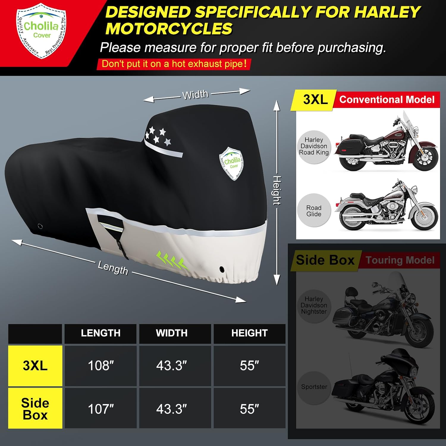 CholilaCover Motorcycle Cover for Touring Models - 600D Harley Davidson Motorcycle Cover Nightster, Sportster, Fat Boy - Waterproof Outdoor Storage - Black+Gray