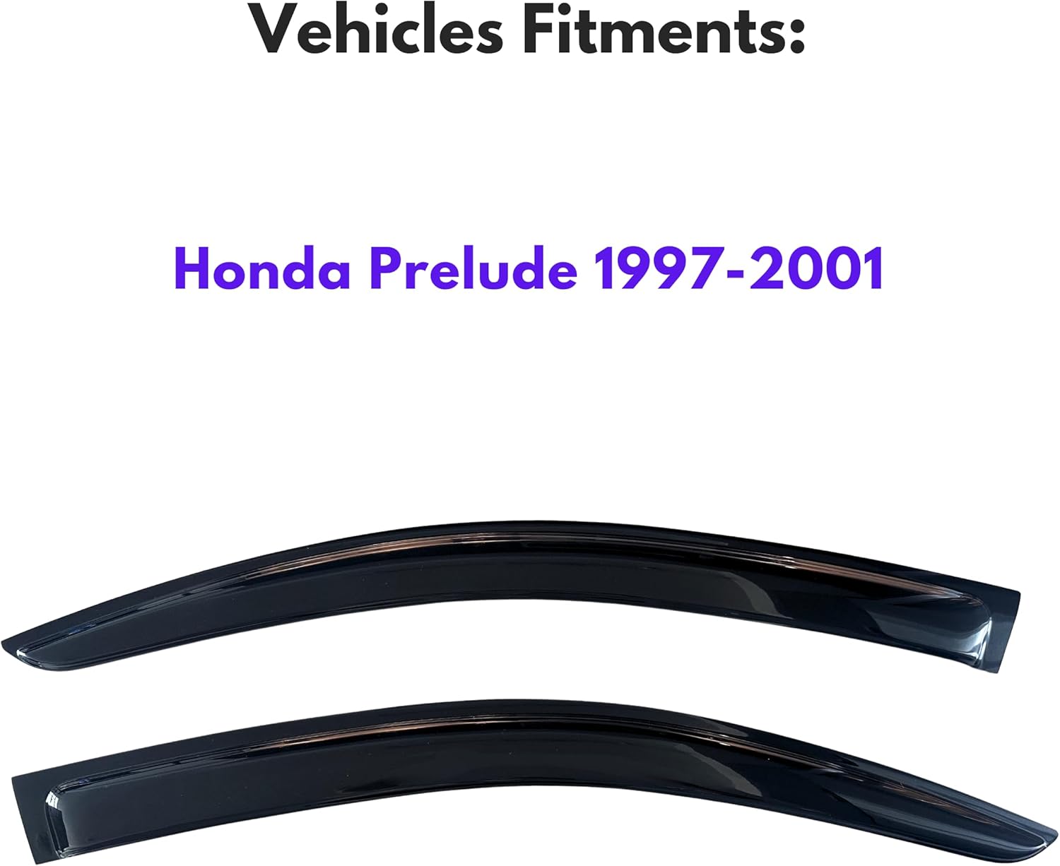 KPY Window Visor Compatible with Honda Prelude 1997-2001, 2PC Rain Guard Side Window Vent Deflectors Tape-On Style, 1997 1998 1999 2000 2001