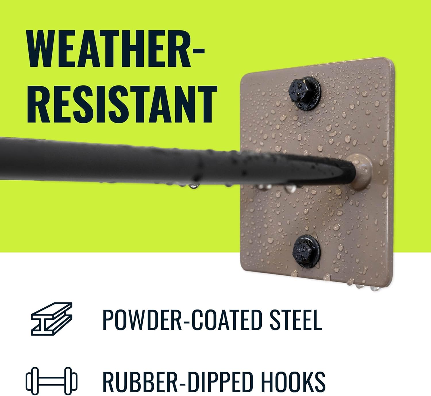 - Built Like A Tank β Solid steel wall hangers for your heaviest tools. Durable, powder-coated steel holds up to 50 lbs each to combine brute strength with everyday use.