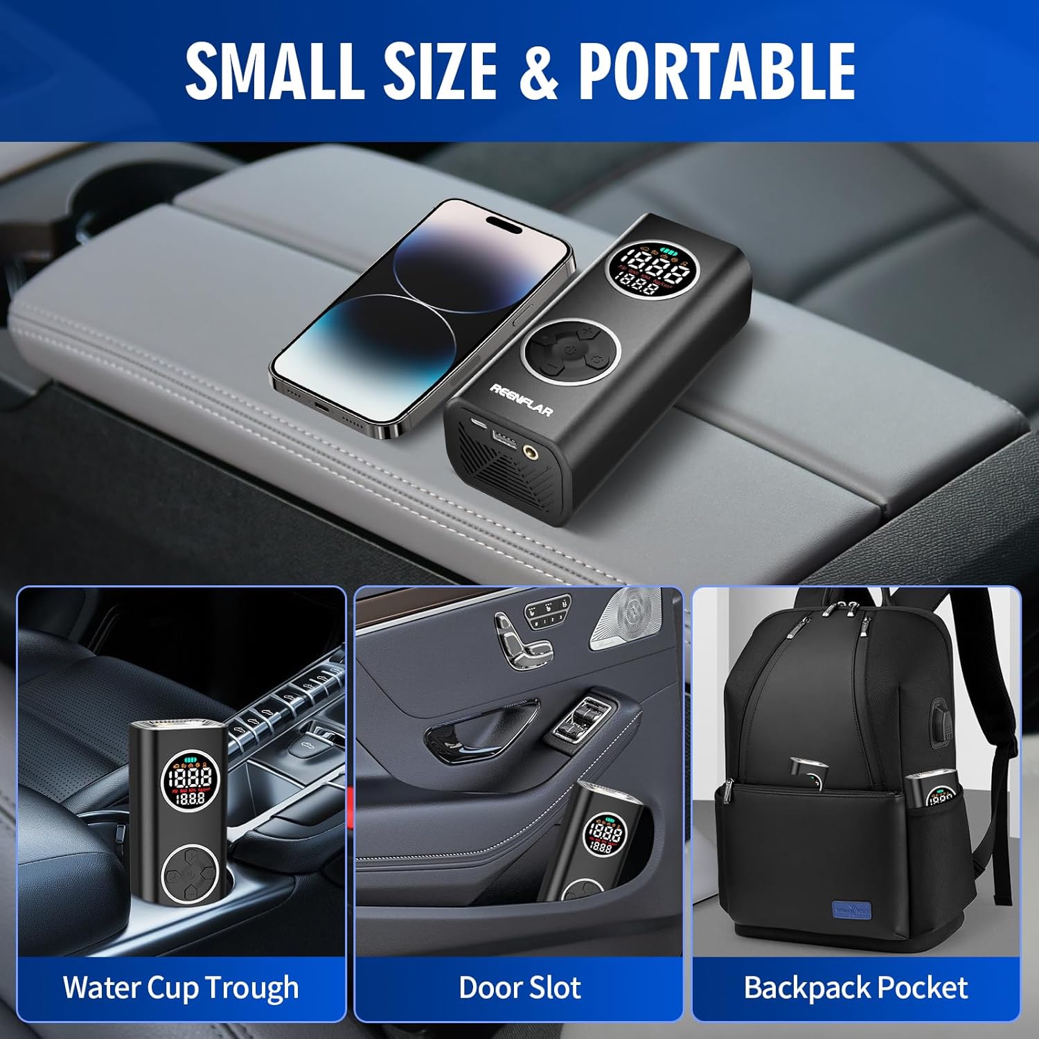 - 【Powerful Cordless and Corded Air Inflation Pump】The air tire inflator built-in 20000mA rechargeable battery cordless and 12v dc power cord, the inflation speed is 3 times faster than other ordinary cordless inflators on the market, with a 35% increase in power, offering cordless and effortless inflation for a wide range of applications including cars, bicycles, sports equipment, and motorcycles, with a maximum pressure of 150PSI, it ensures efficient inflation, eliminating the need for manual labor and keeping your tires road-ready