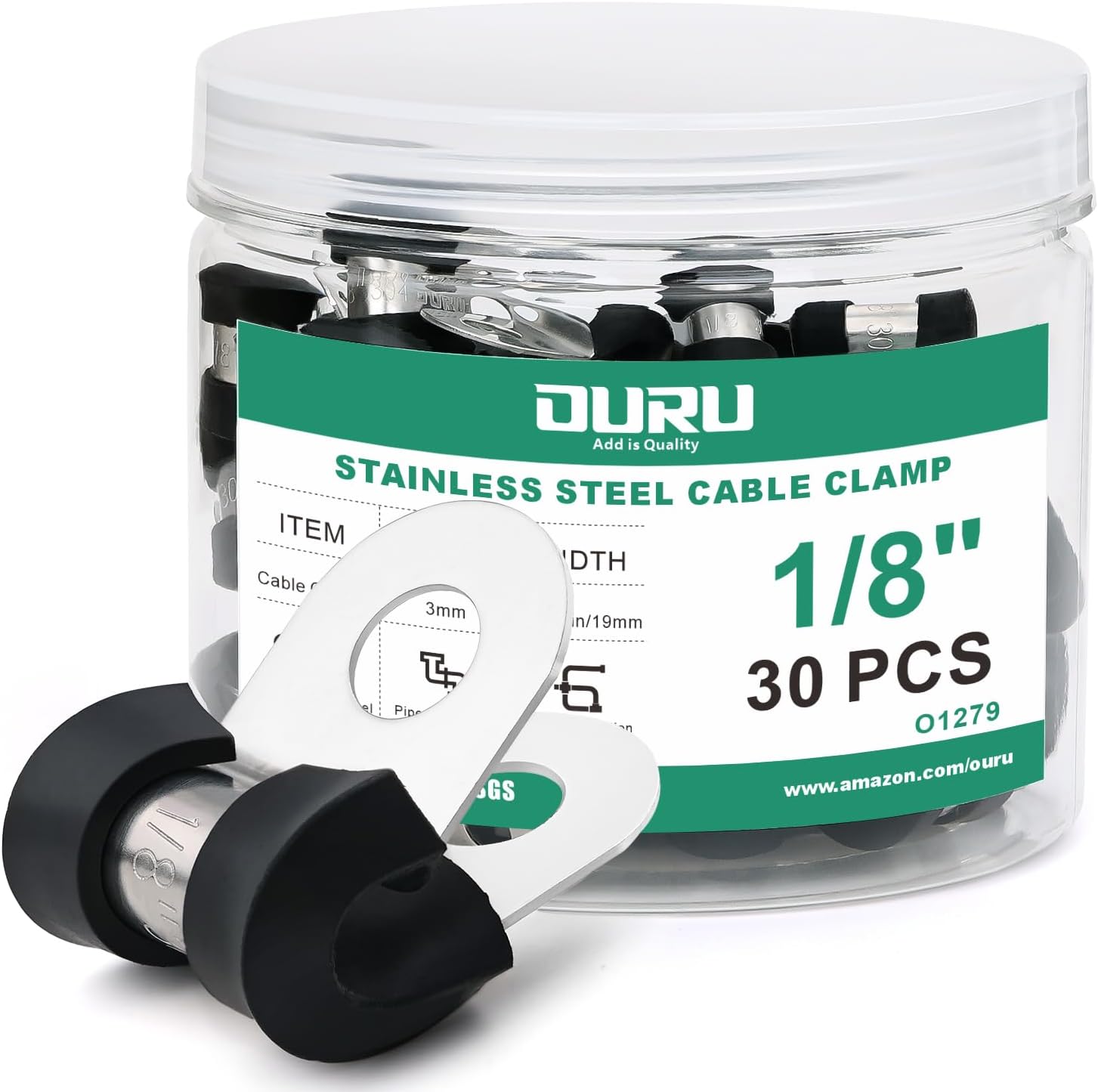 - OURU Insulated Cable Clamps Kit —The stainless steel hose cable clamps box set contains 30PCS 1/8" p-clamps.Fit for 6M( 1/4 inch) screw bolt to through the screw hole