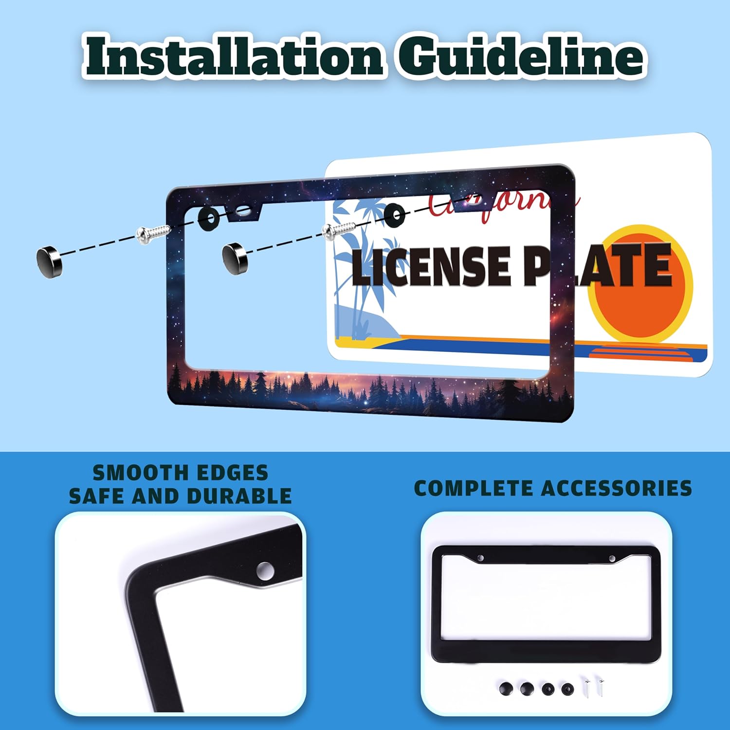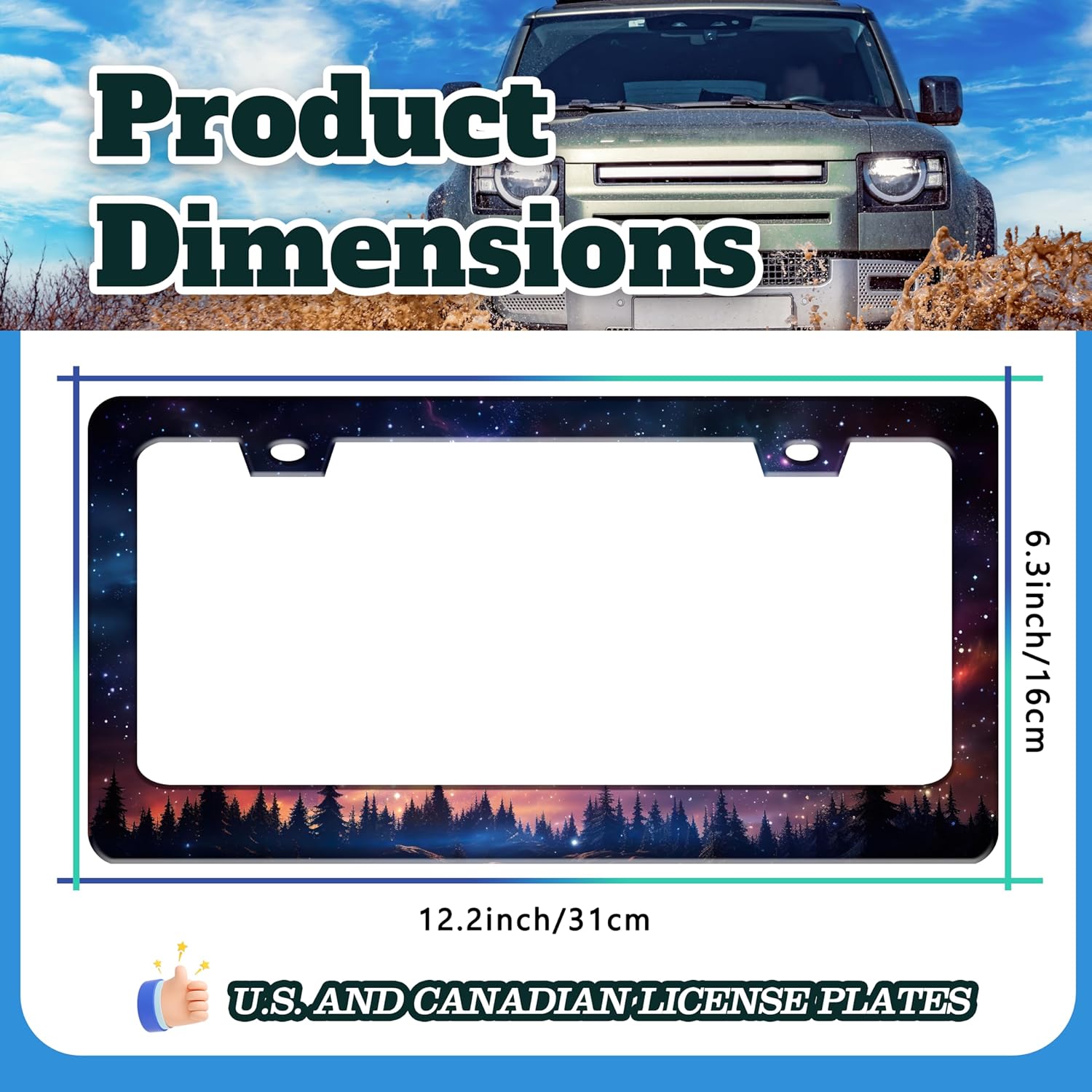 Starry Sky Galaxy License Plate Frame Beautiful Night Forest Funny License Plate Holder for Front or Rear Car Tags Durable Stainless Steel Car Decoration with Screws 6.3 X 12.2 in for Men Women