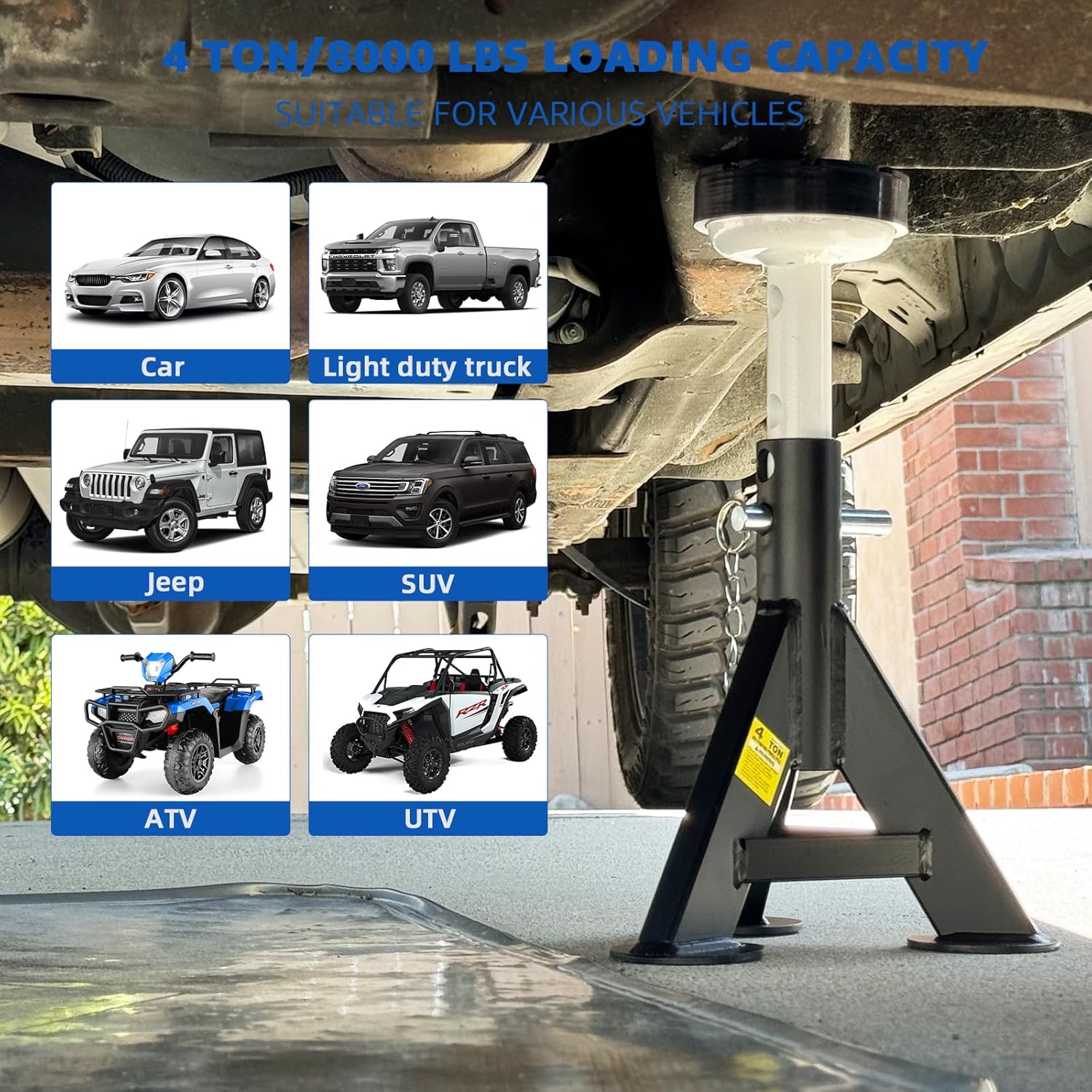 - Perfect for modern low ground clearance cars, these jack stands cater to a variety of vehicles, including small cars, SUVs, light-duty trucks, jeeps, ATVs, UTVs, and more.
