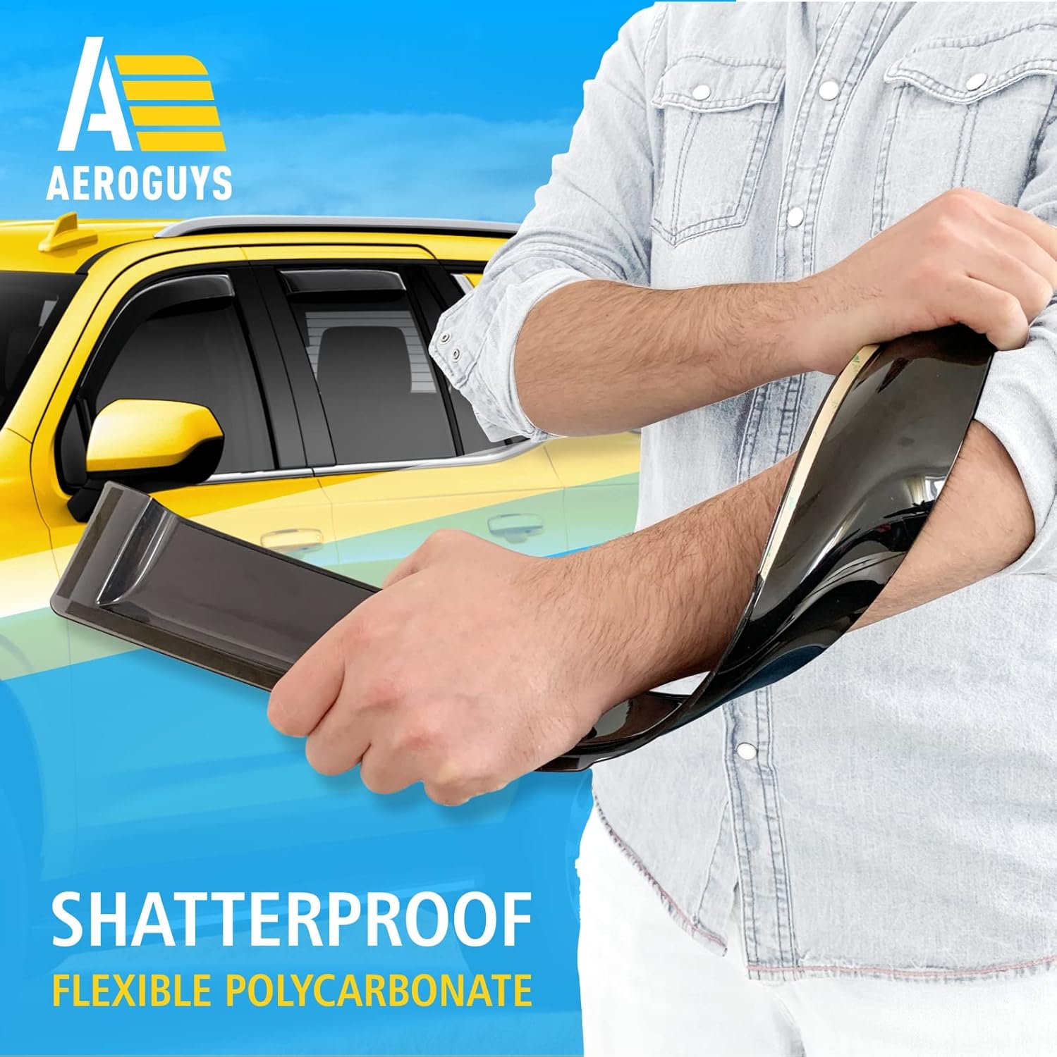 - Incredibly Durable AEROGUYS Auto Window Deflectors – They are made with strong and tough polycarbonate which is clear and scratch-resistant. They also provide UV protection making your ride more comfortable under all weather conditions.