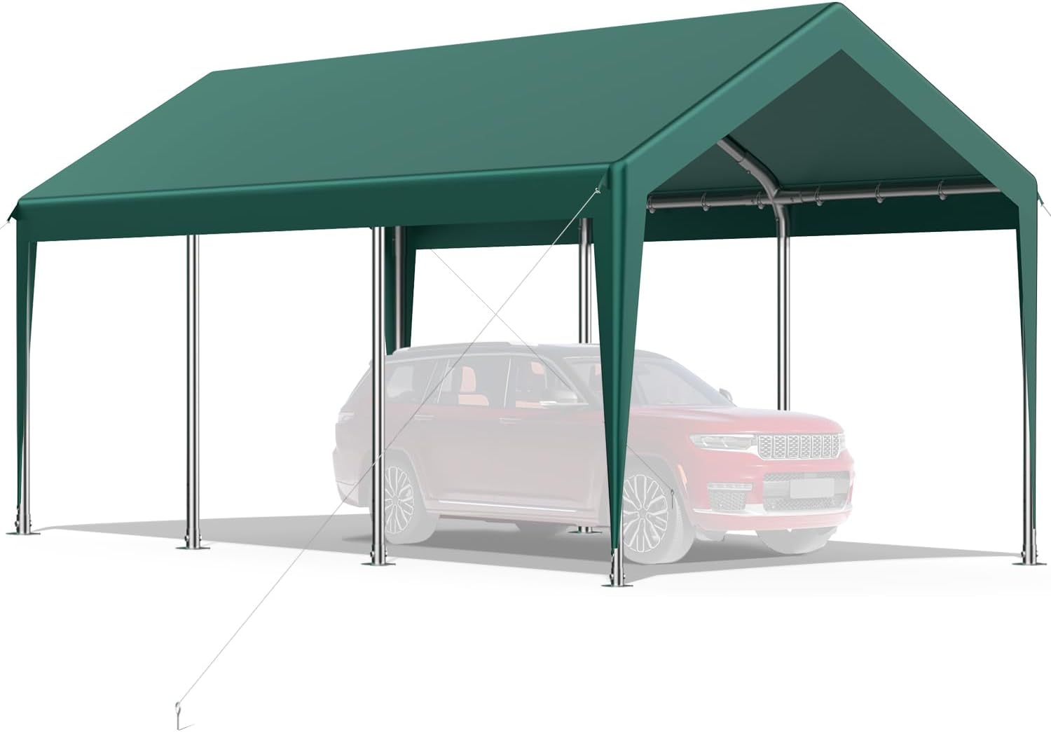 - Heavy-Duty Structure: Raxmolo carport shelter features a robust, rust-resistant powder-coated steel frame that effectively guards against chipping, peeling, rust, and corrosion. Equipped with 8 sturdy legs made from 1.5-inch galvanized steel pipes, it ensures exceptional safety and stability for your peace of mind.