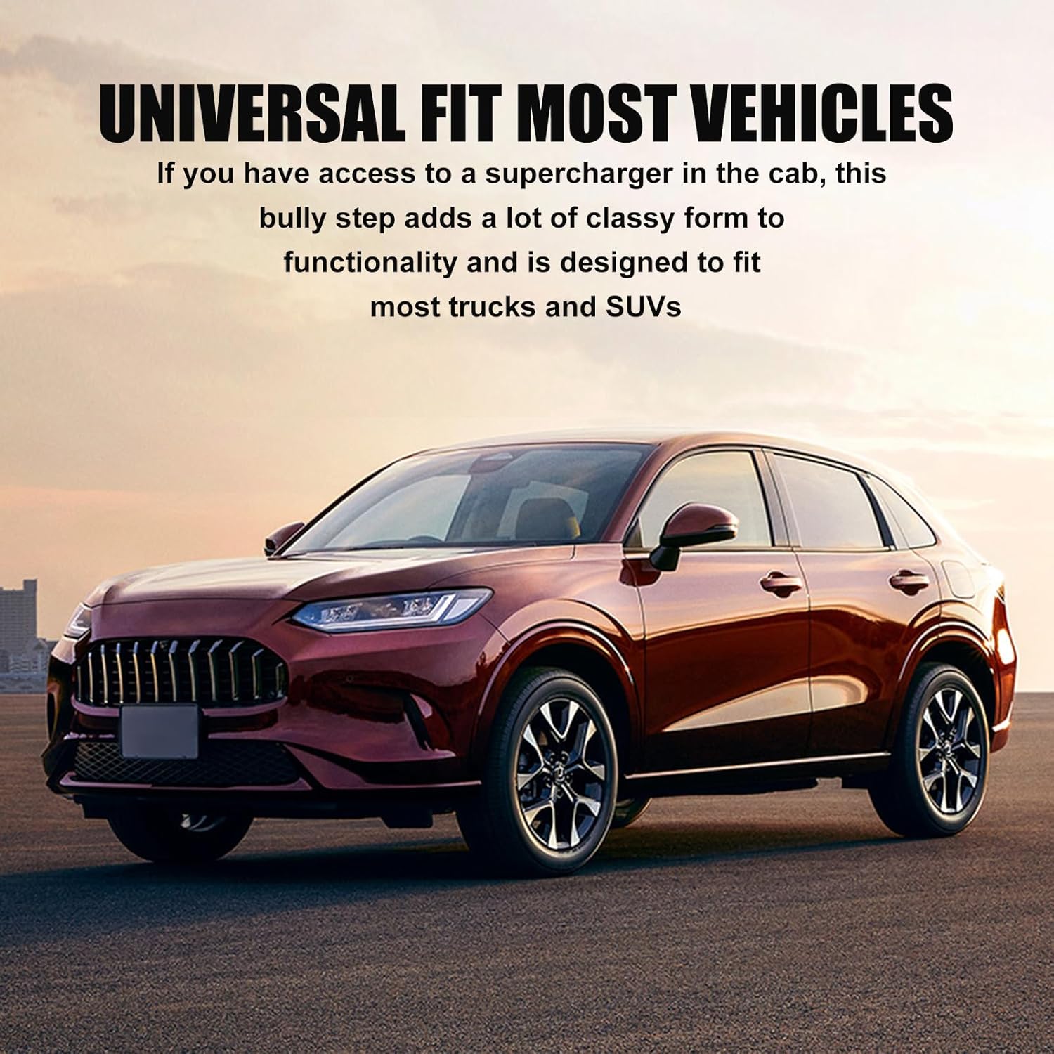 - Universal Fit: Designed to fit most trucks and SUVs, these bully steps add both rugged sophistication and practical functionality to your vehicle, offering an elegant form that complements their universal fit.