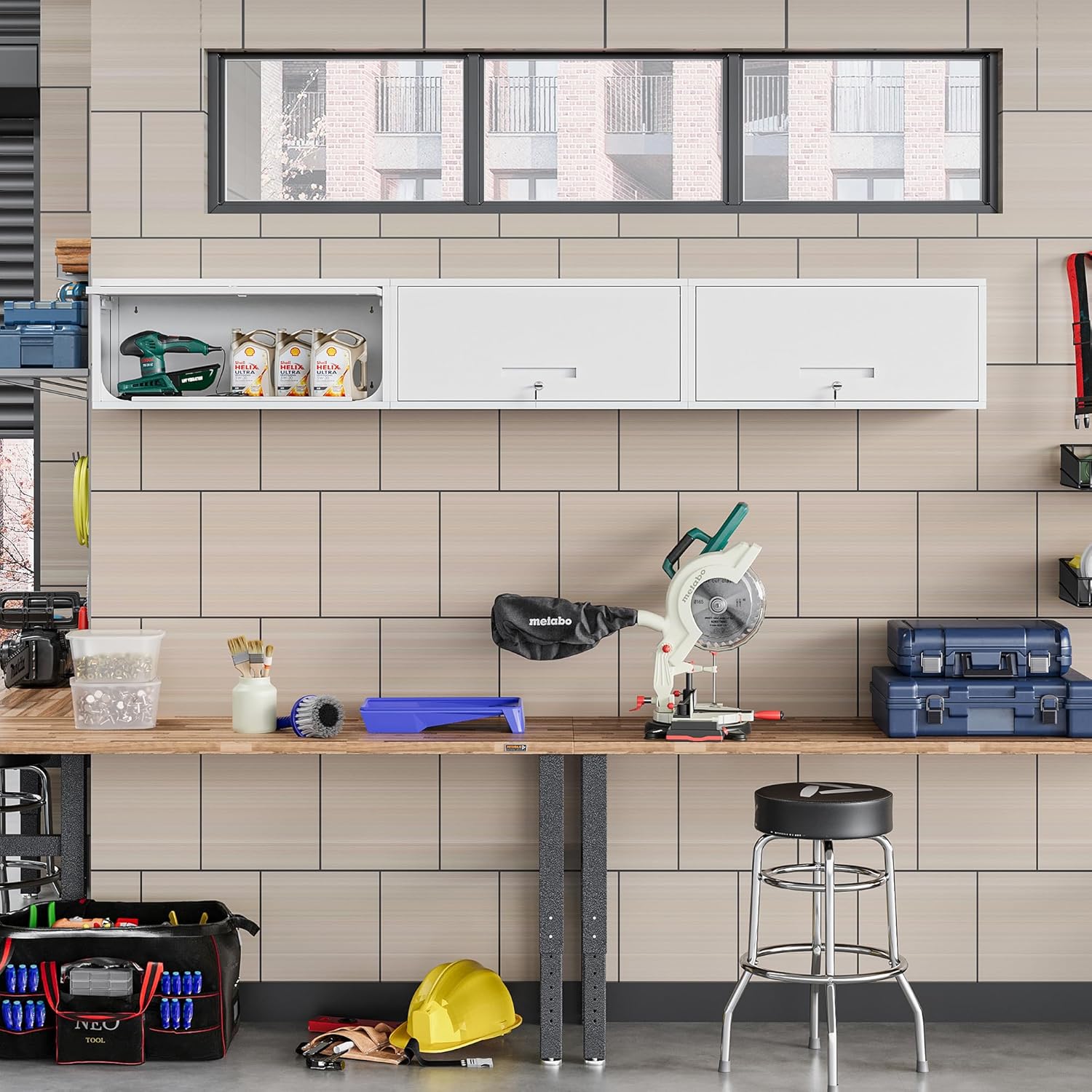- 【Multipurpose】This lockable wall storage cabinet provides versatility and practicality for your storage needs. Perfect for Garage, Warehouse, Home, Office.