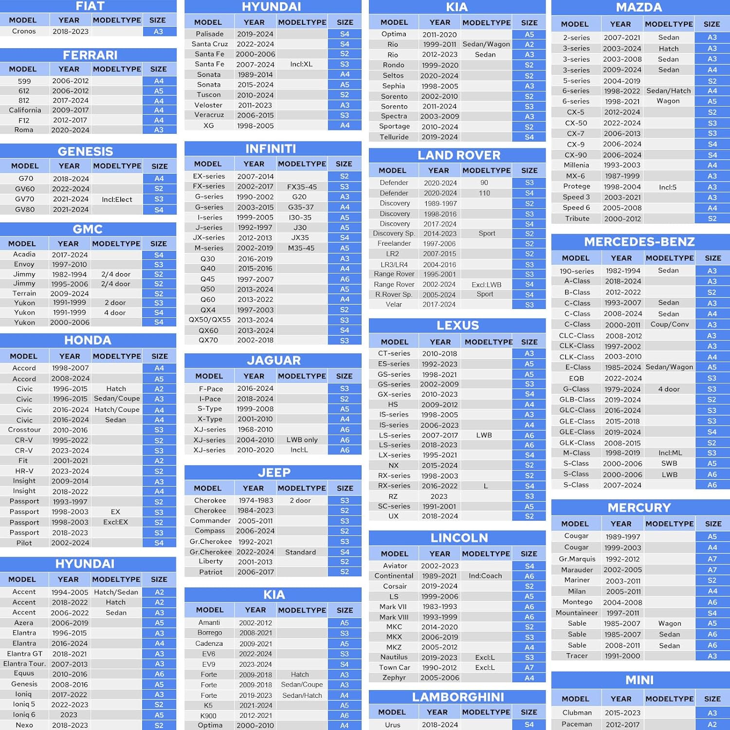- ăHow to Choose SizeăATHUPEAD waterproof car cover provides an accurate size chart (Figure 4-6), find your brand/model and year of manufacture in the size chart to match the correct size.