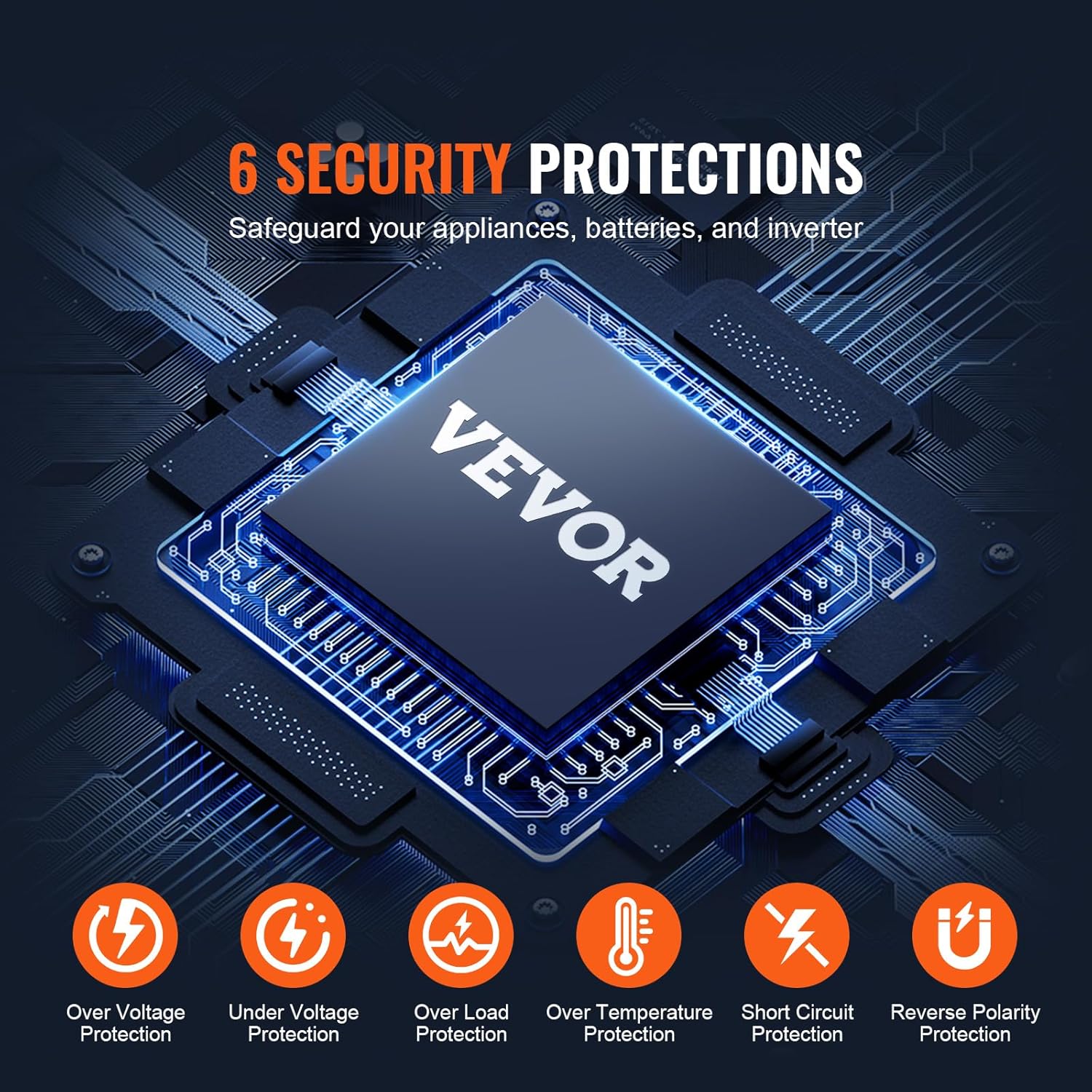 - Certified Security, Six Protections: CE/FCC certified for your peace of mind, our sine wave power inverter boasts 6-layer protections, including over voltage protection, under voltage protection, over load protection, over temperature protection, short circuit protection, and reverse polarity protection. Plus, equipped with 100% pure copper cables, our inverter minimizes power conversion loss, ensuring your devices stay powered up efficiently and safely.