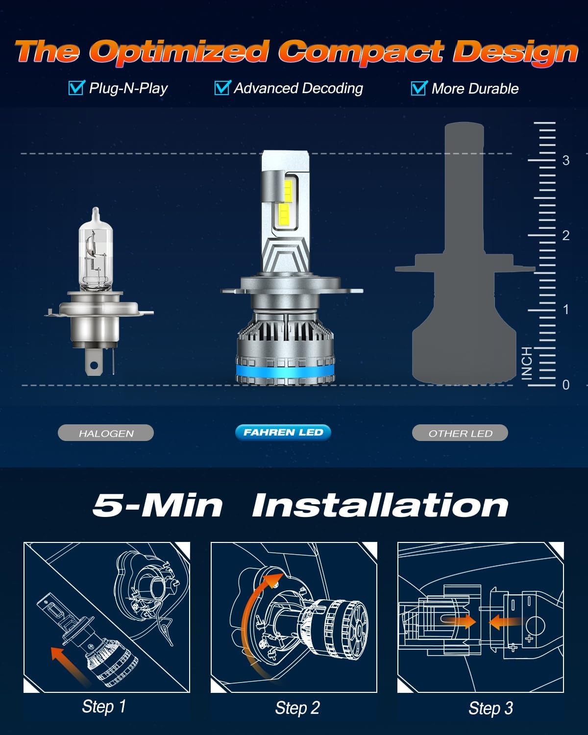- Compatible with 99% of Vehicles: The FX6 series H4 lighting bulbs offers enhanced compatibility with most vehicles. Some sensitive models may require an additional CANBUS decoder. Note that the compatibility system may not be 100% accurate or up to date. Refer to your user manual or the part number of your original bulbs."