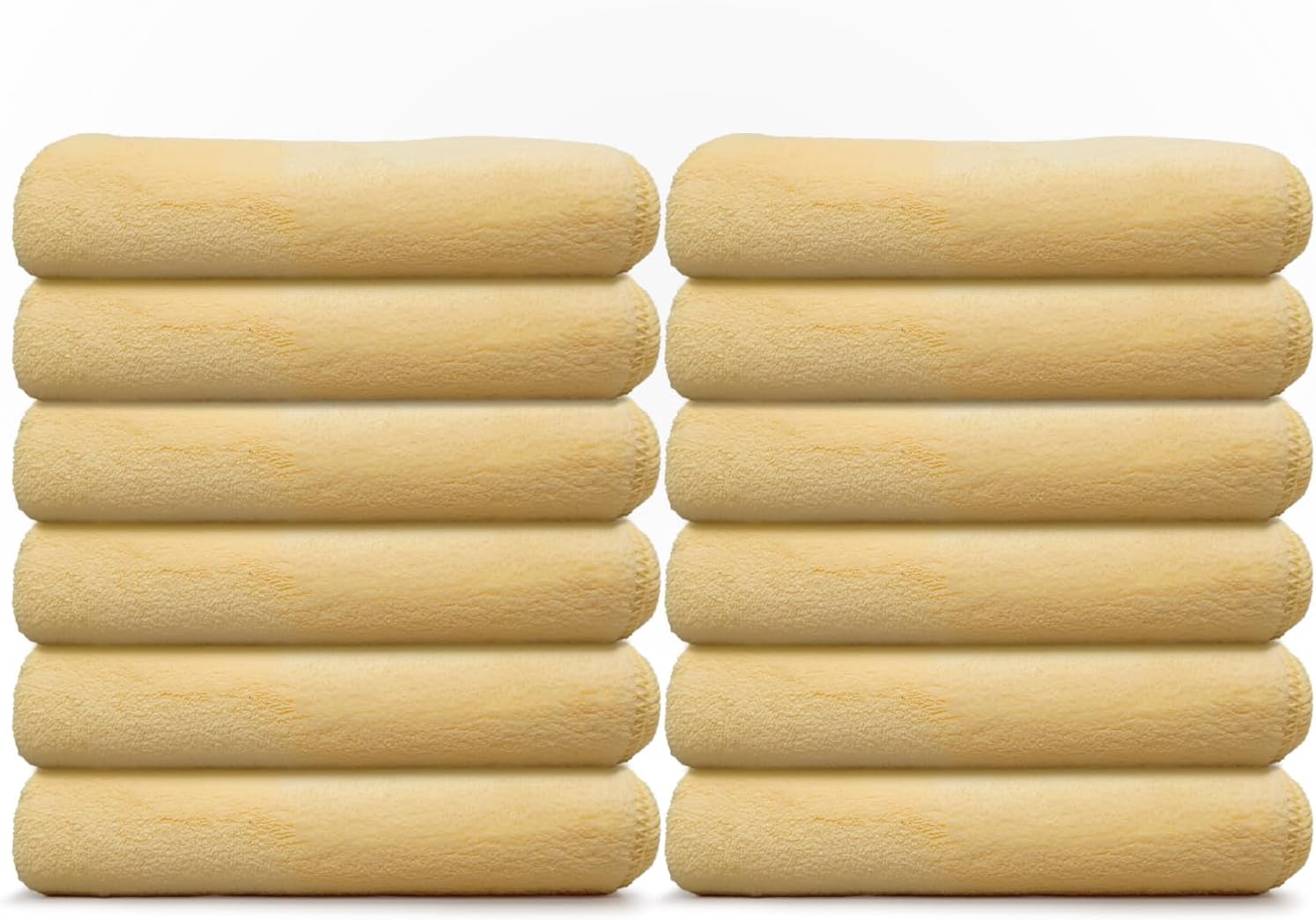 VPD Microfiber Coral Fleece Towels - Dark Yellow, Ultimate Car Drying Towels, Extra Large, Super Absorbent, Lint and Scratch Free, Perfect for Car Wax Polishing (12, 15.75" by 15.75")