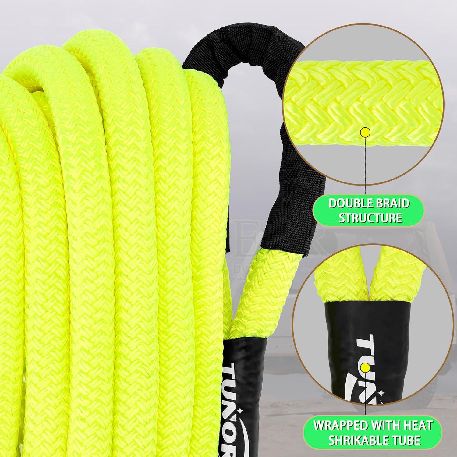 Kinetic Recovery Tow Rope Heavy Duty Offroad Snatch Strap for for Trucks SUV UTV ATV Tractor Car Jeep, Tractor, Bobcat, Ram 2500, Silverado 2500, Ford F250 (Green, 1" x 30')