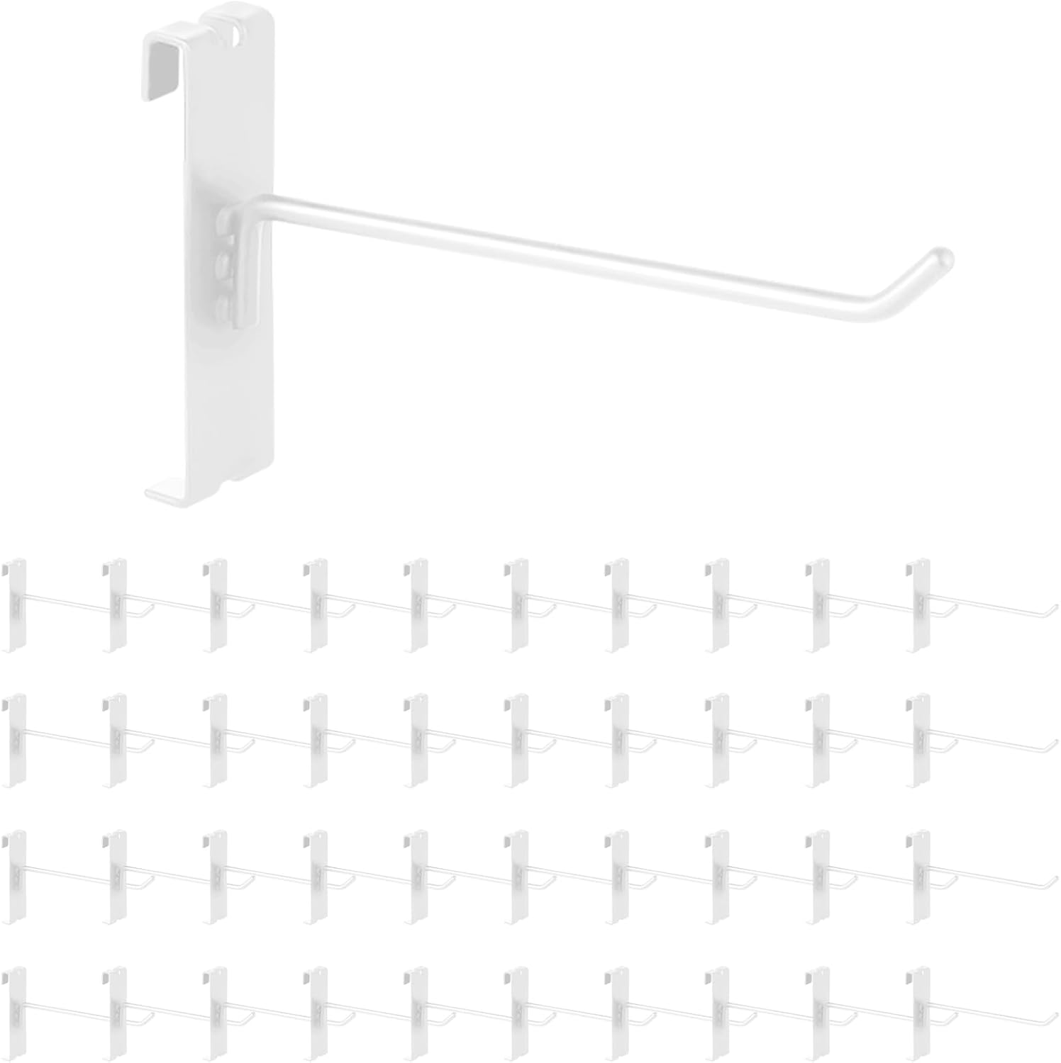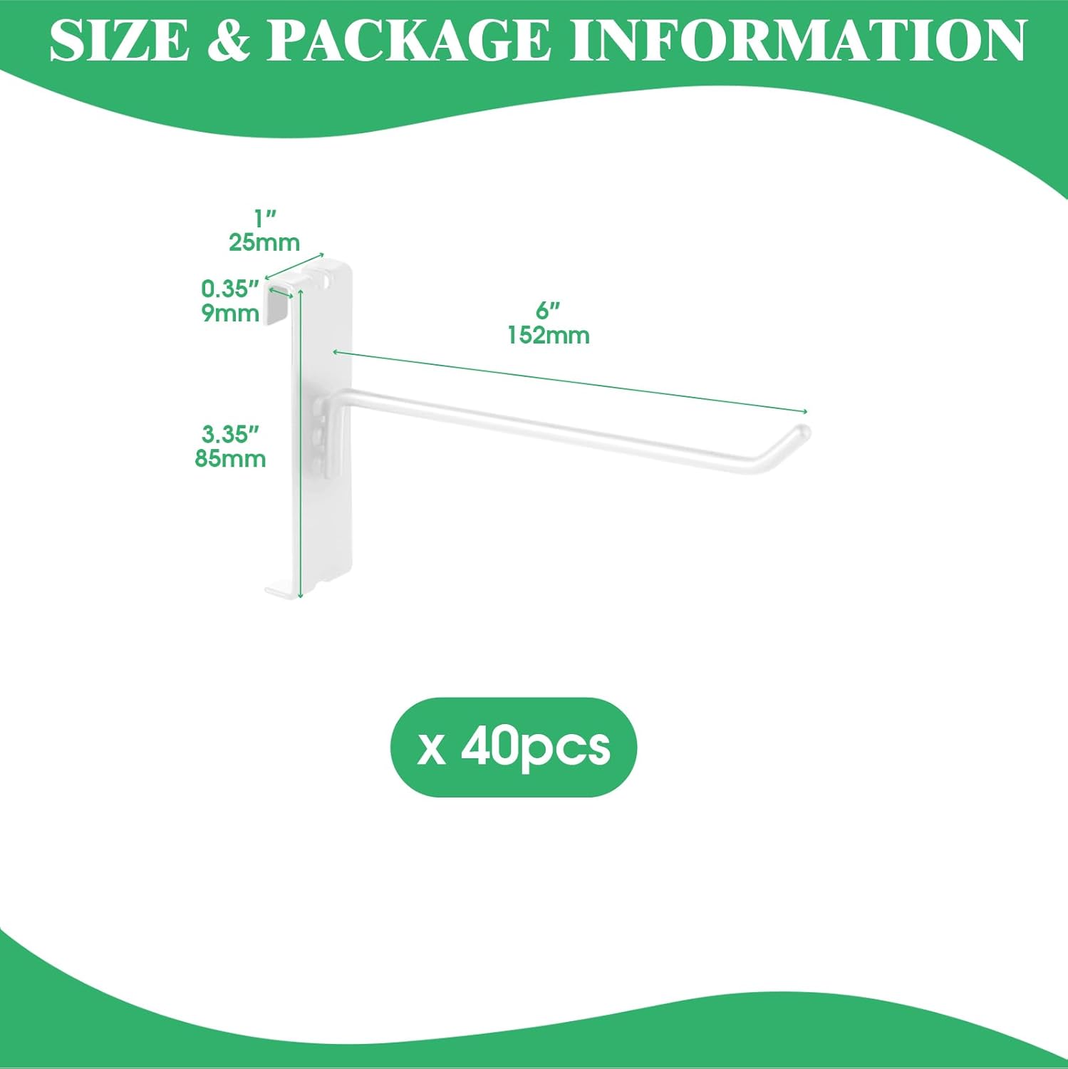 - [40Pcs 6” Gridwall Hooks] You will receive 40pcs 6 inch/15cm white metal grid panel hooks. The thickness is approx. 5 mm/ 0.2 inch. The nice the combination of enough quantity will meet your space planning or replacement needs.