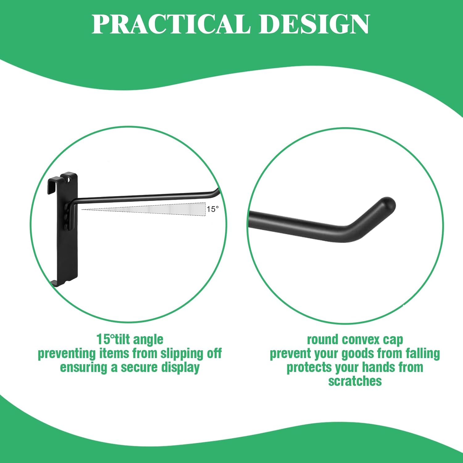 - [Practical Design] Featured a 15°tilt angle, the grid hooks prevent items from slipping off and and adjust in an orderly manner, which can help you organize all of your retail and household needs that you may have.Round convex cap prevent your goods from falling and protects your hands from scratches.