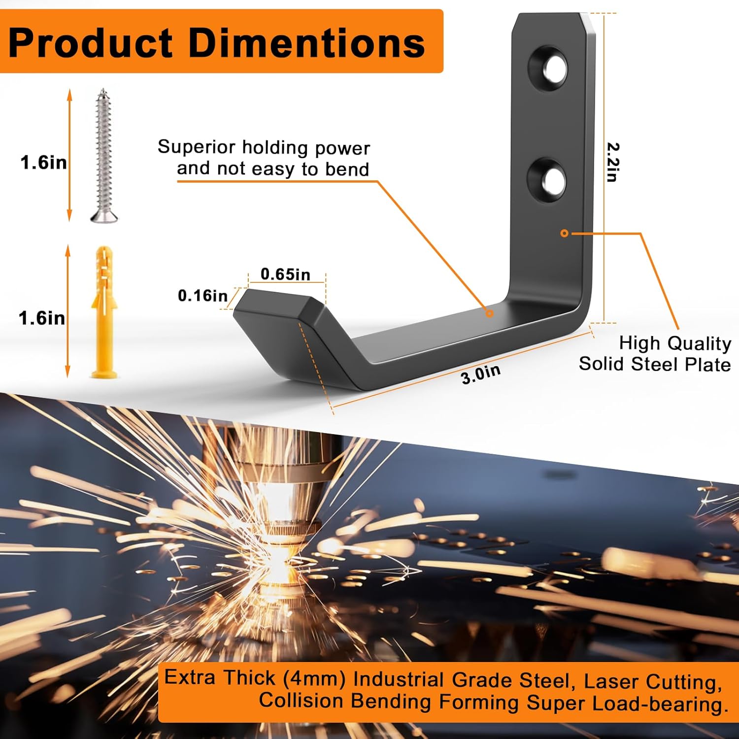 - 【What You Get】The hanging hooks consist of 6 wall brackets, 12 drywall anchors and 12 screws. The heavy duty wall hook is rigorously tested before shipment. Please feel free to contact us with any questions regarding our items. We will definitely give you a satisfying solution.
