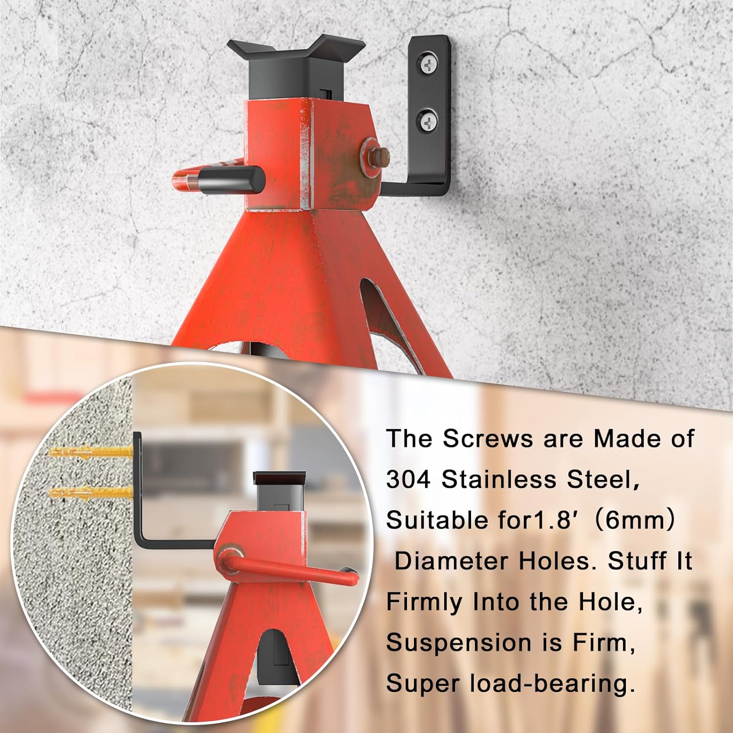 - 【Wide Application】The wall hook is designed to neatly store various tools such as jackstand, eliminate accumulation on the floor, keep your workspace organized, and make tools within reach.