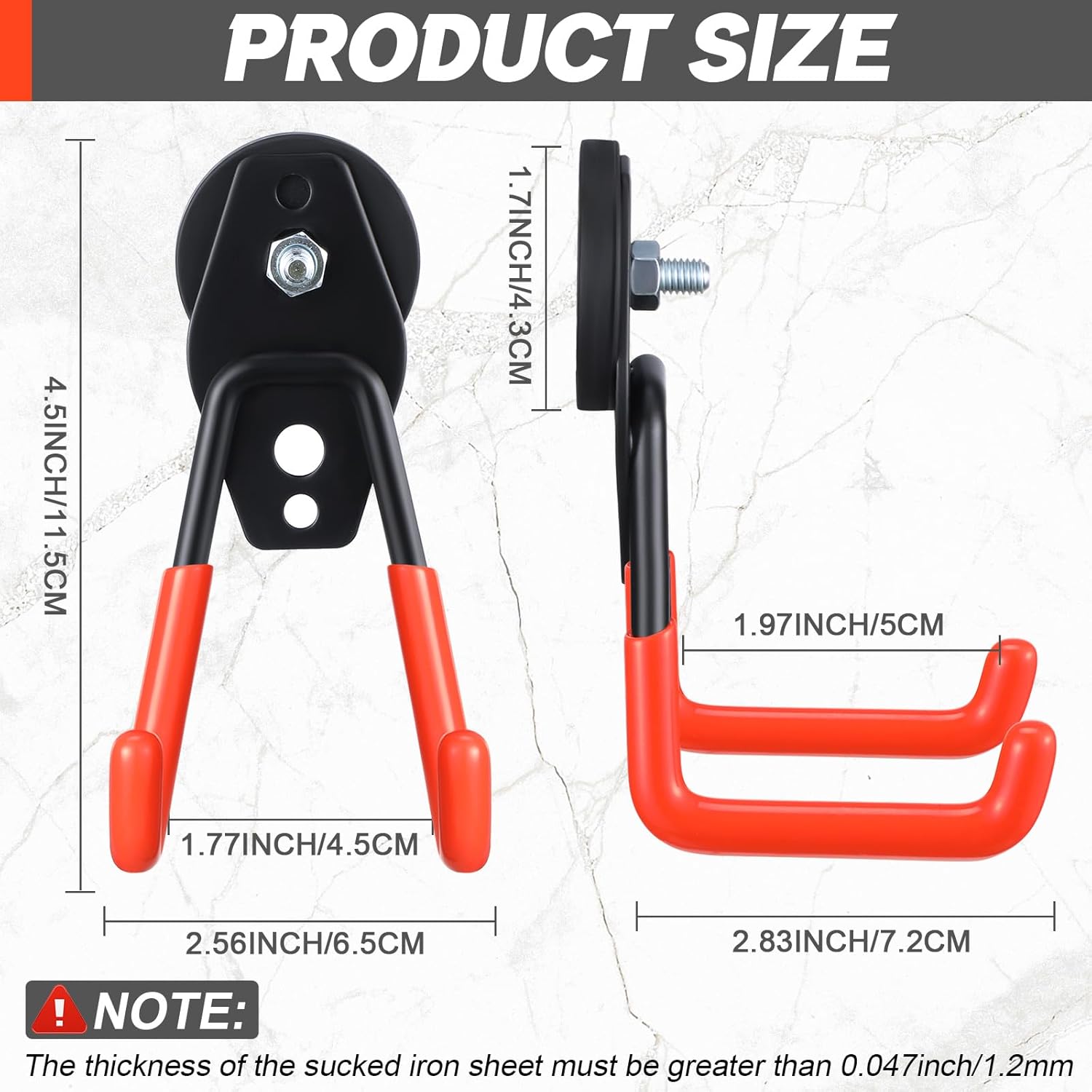 - Easy to Install: no need to use any tools, and the magnetic hooks will not break the surface; The black magnetic hooks can be placed directly on the metal surface; Please note that the thickness of the sucked iron sheet must be thicker than 0.047 inch/ 1.2 mm; Or else the magnetic hook will slide off