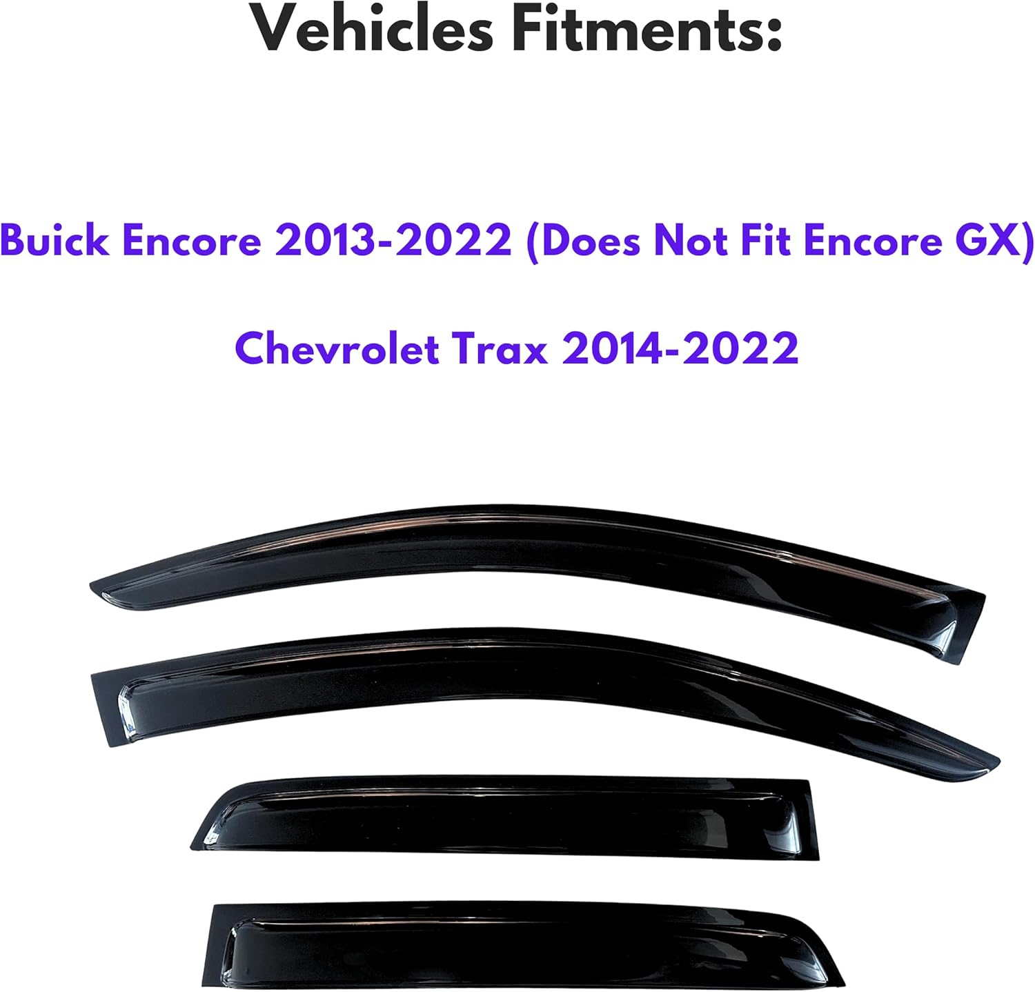 - 【Perfect Fit】KPY window visors rain guards vent deflectors compatible with Buick Encore 2013 2014 2015 2016 2017 2018 2019 2020 2021 2022 (Does Not Fit Encore GX), Chevrolet/Chevy Trax 2014 2015 2016 2017 2018 2019 2020 2021 2022