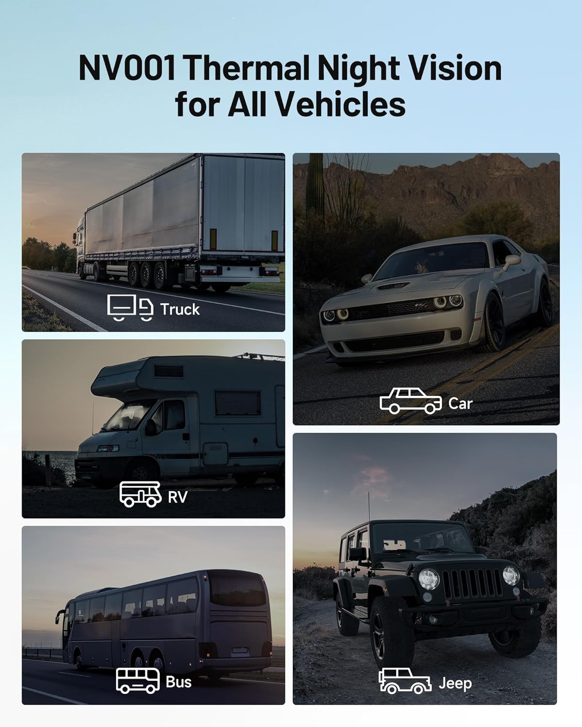 - Universal Compatibility: The NV001 is engineered to seamlessly integrate with a variety of vehicles, including trucks, cars, RVs, buses, and jeeps, making it an indispensable safety feature for a broad spectrum of drivers seeking advanced driving assistance. Provide 1-year warranty and lifetime technical support.