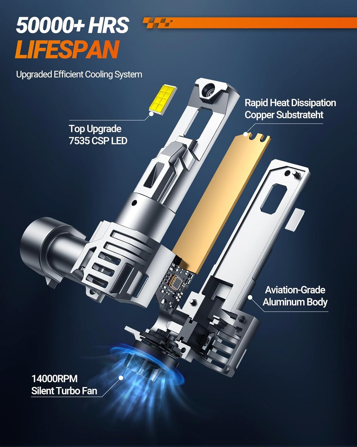 - ă60000+ Hours LifespanăEquipped with a 13000RPM high-speed cooling fan, SEALIGHT 9006 led light bulb offer exceptional heat dissipation, providing over 60000 hours of reliable illumination and smooth operation. In addition, IP67 waterproof technology can make it use in a variety of weather