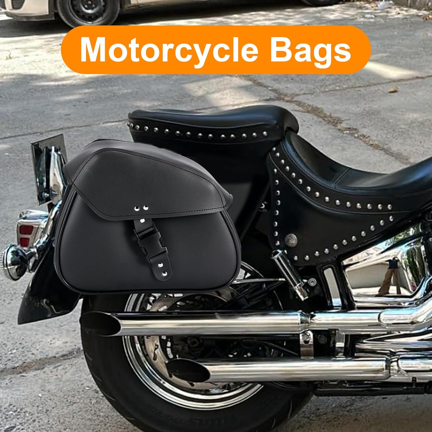 Motorcycle Saddle Bags Synthetic Leather Luggage Bag Waterproof Throw Over Saddlebags For Motorcycle Softails Sportsters Choppers Dyna V-star Shadow (Single Buckle, Black, 12.6 X 8 X 10)