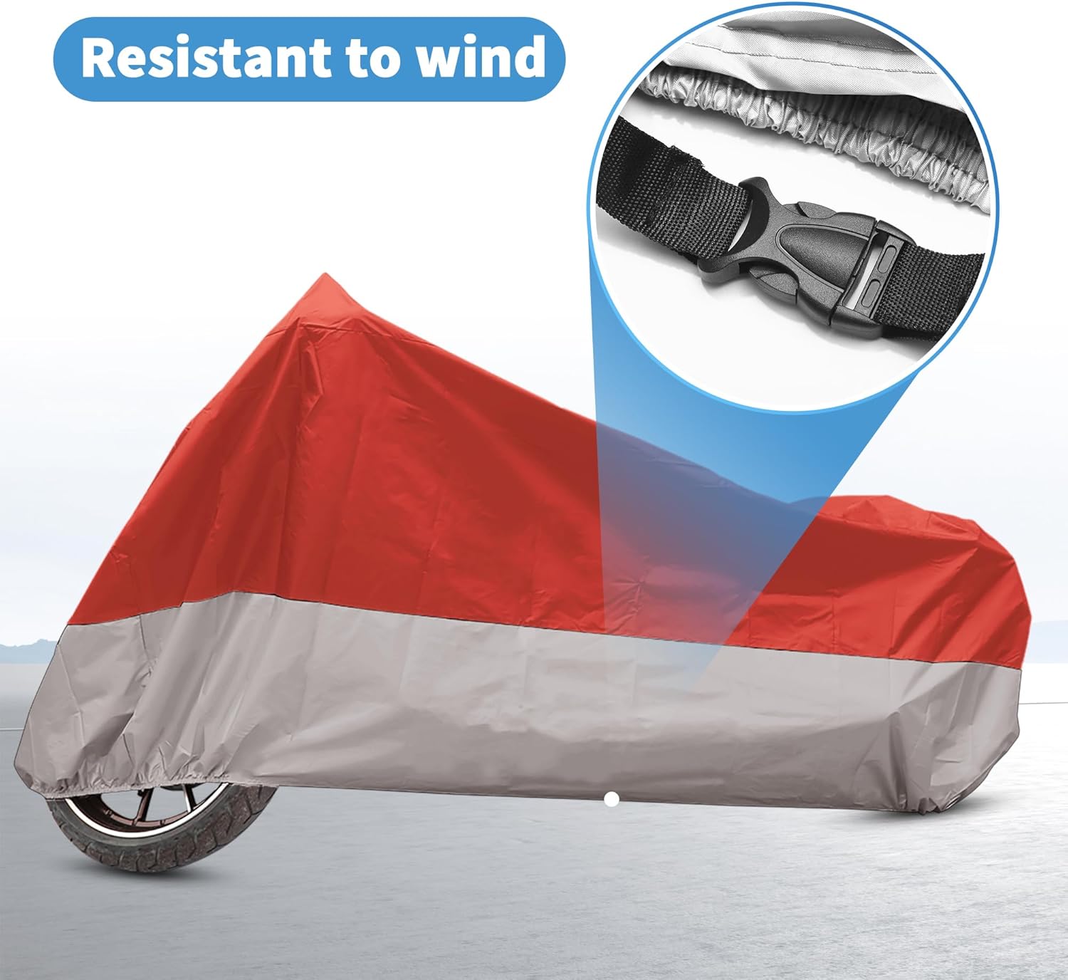 X AUTOHAUX Motorcycle Cover for Harley Davidson for Honda for Suzuki All Season Waterproof Sun Outdoor Protection Motorbike Cover Fits Up to 96.46'' Motorcycles Cover XL Red Silver Tone