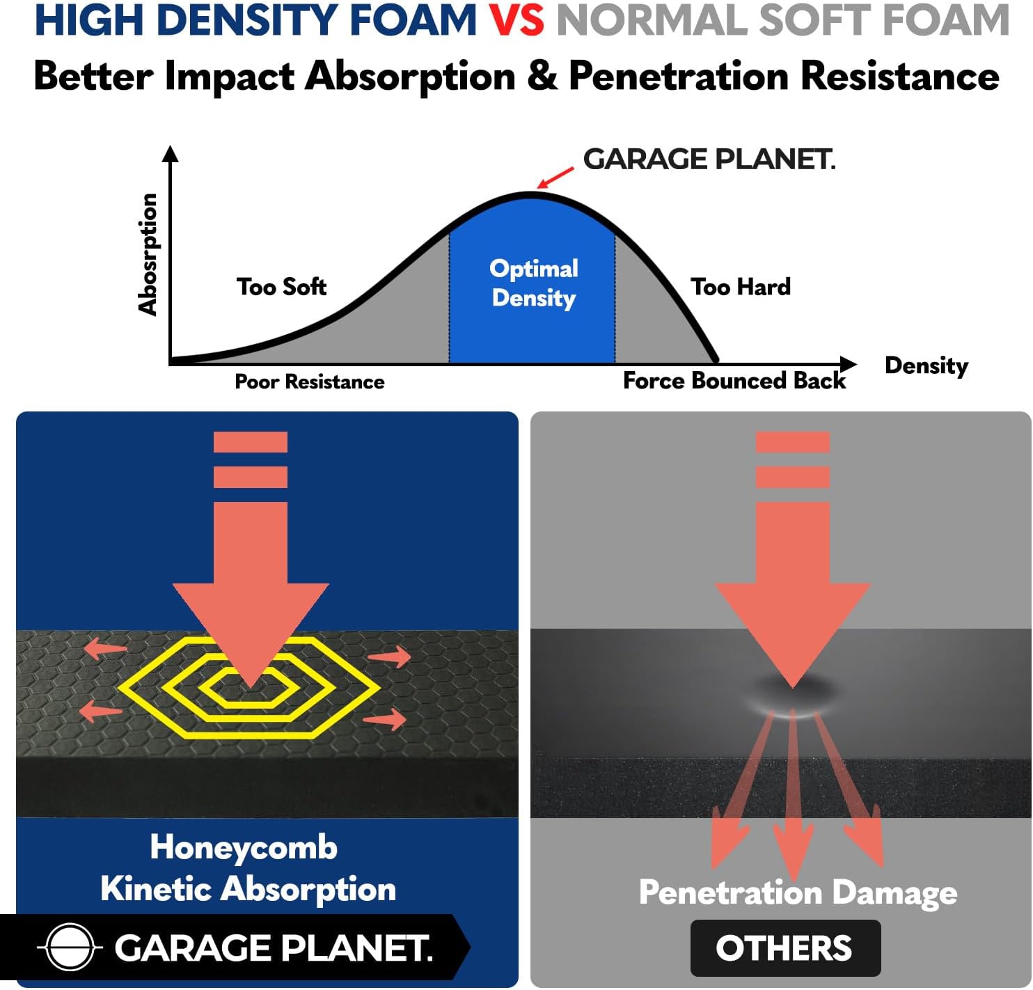 - â ăHoneycomb Kinetic AbsorptionăFeaturing the thickest padding on the market, our patented honeycomb kinetic absorption structure combines with top-quality material to absorb any impacts of over 485 lb (220 kg) on the garage wall guards.