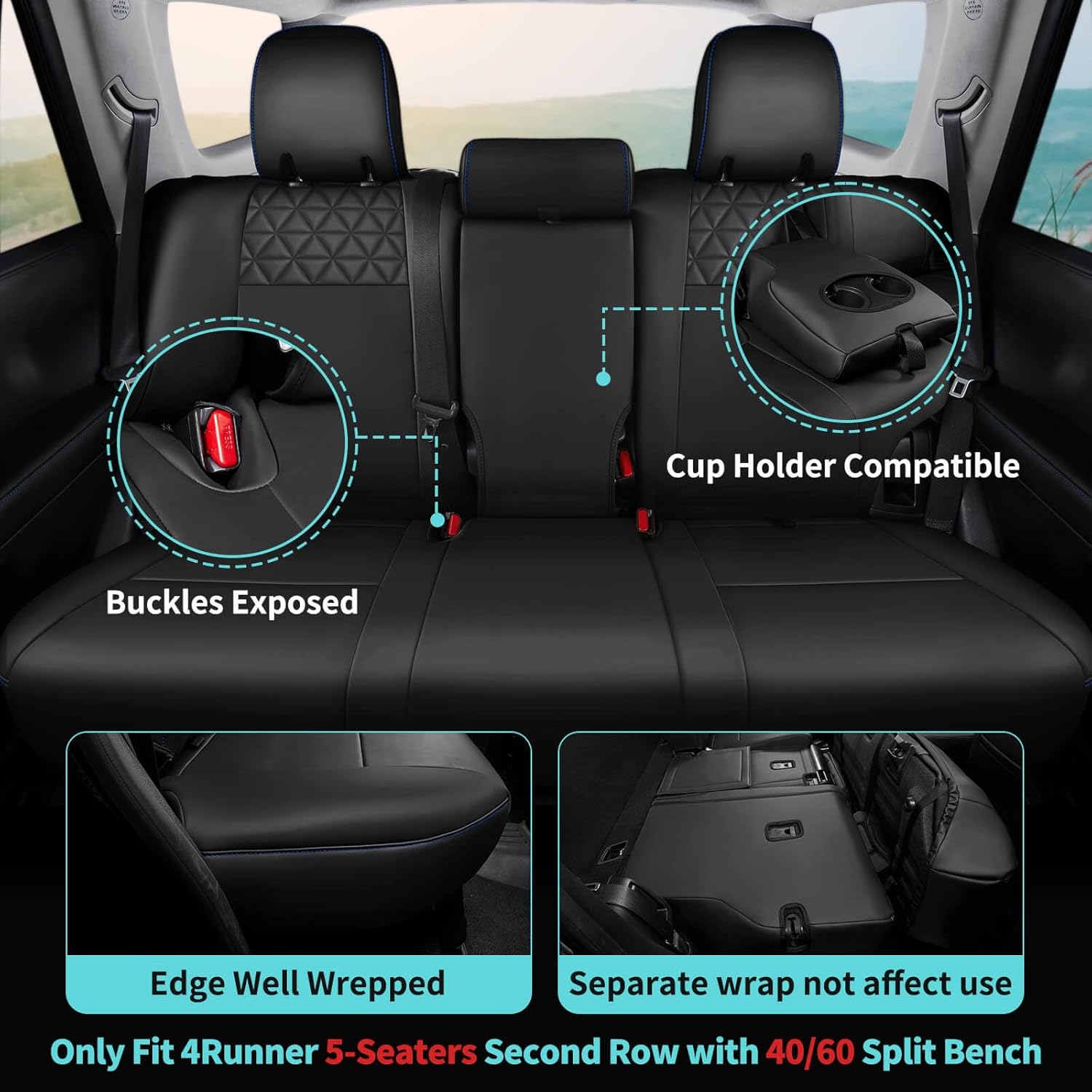 - Compatible with 5 Seats & 2 Rows - Car seat covers are tailored to fit 5-seat and 2-row versions, with a 40/60 split for 2nd row. Fit for 5-seat 4Runner models from 2011 to 2024, and are not compatible with the 7-seater and 3-row versions