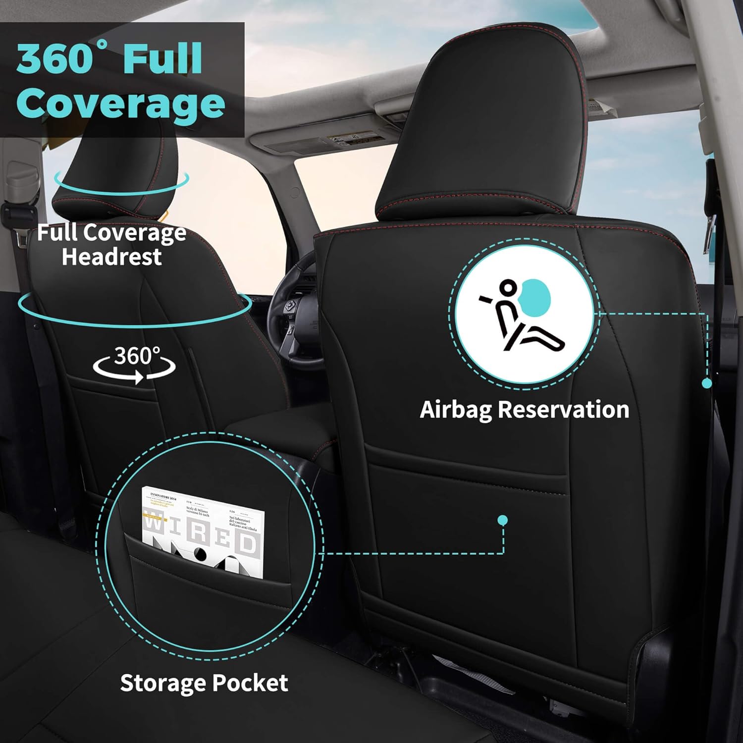 Seat Covers for Toyota 4Runner 2011-2024, Faux Leather Car Seat Cover Full Set, 3-Row-Only for 7 Seats Version-BlackRed