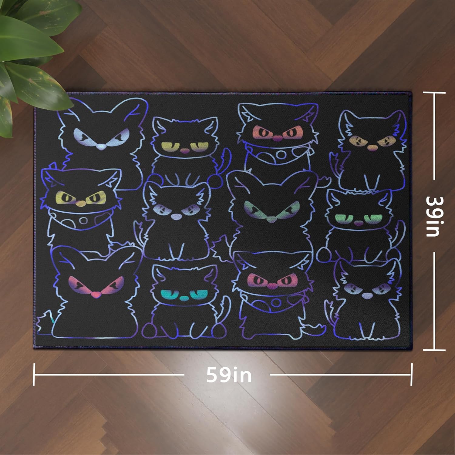 - Eye - Catching Cat Design:Measuring 59 x 39 inches (150 x 100 cm), this rug showcases a grid of adorable yet slightly “mischievous - eyed” black cats with neon - hued outlines. Their colorful eyes and subtle accessories add a playful, whimsical touch. Perfect for cat lovers or anyone wanting to inject fun, quirky style into bedrooms, game rooms, or even as a statement piece in entryways.