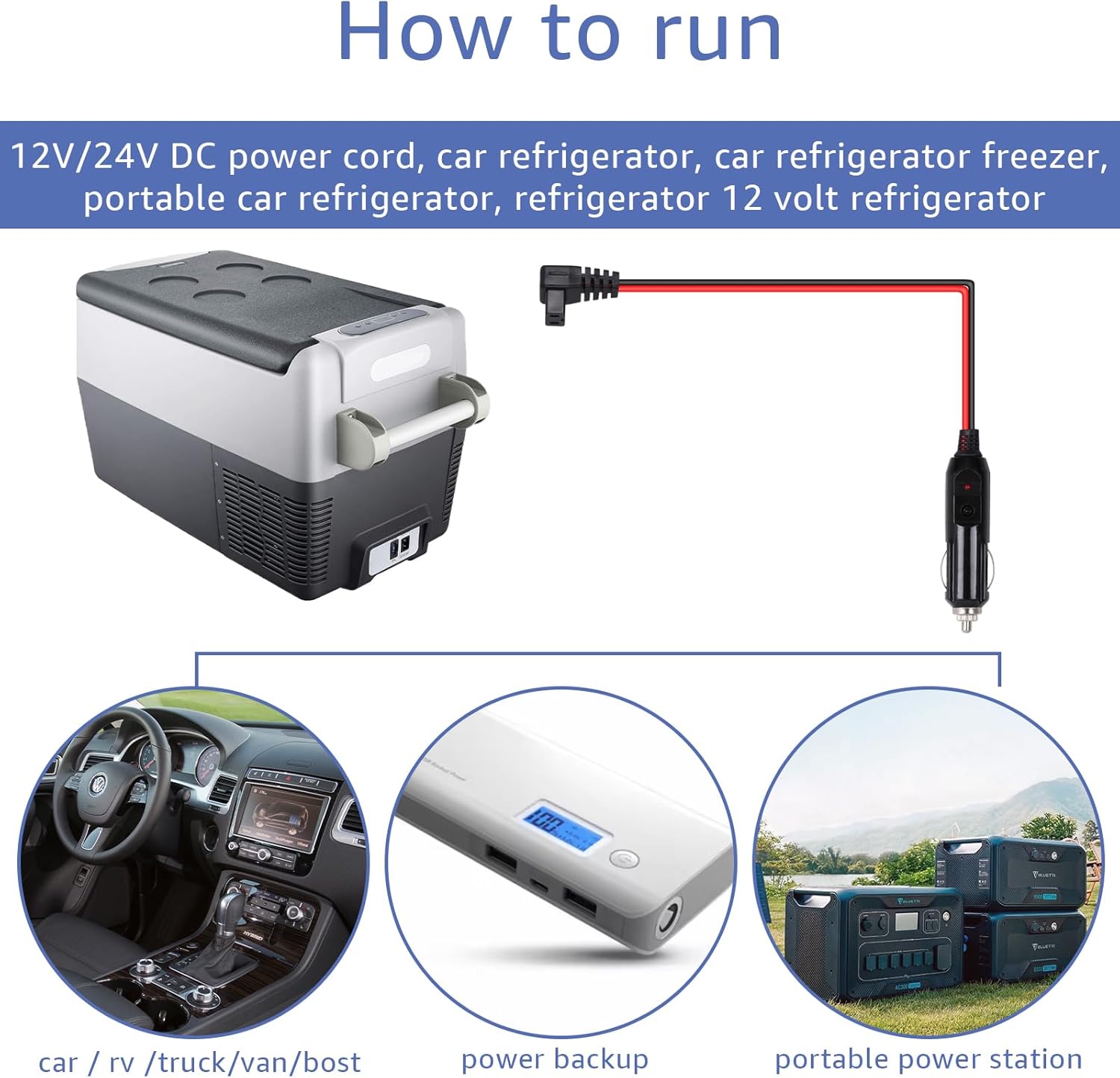 - Widely used: 12V/24V DC portable car refrigerator power cord, suitable for portable car refrigerators, 12V refrigerators, RV portable freezers. It can be used in conjunction with 12V to 24V wires for electric coolers in cars, RVs, trucks, trucks, and ships