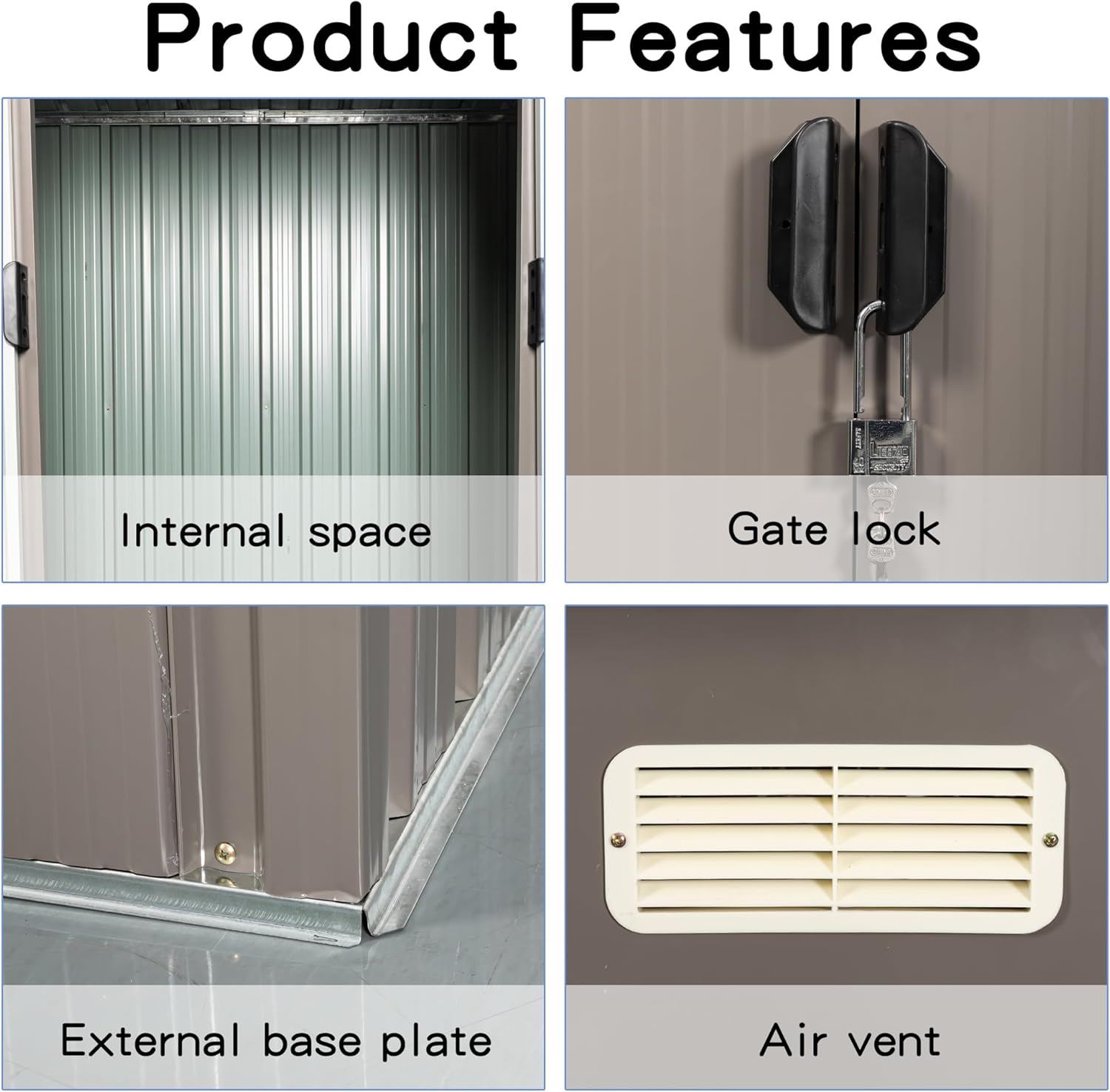 - [Punched Vents] Unlike typical sheds with plastic vents, this shed comes with four integrated punched vents which will not deteriorate against sunlight.