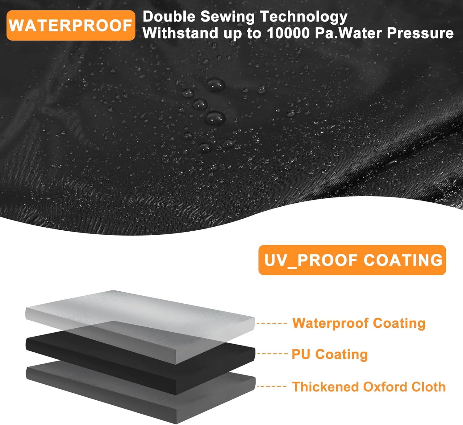 - Waterproof Material: Made of 210D-PU with PU coating, which is more tear-resistant, wear-resistant and features double-stitched seams for enhanced durability and long-lasting use. for complete, thorough waterproofing.