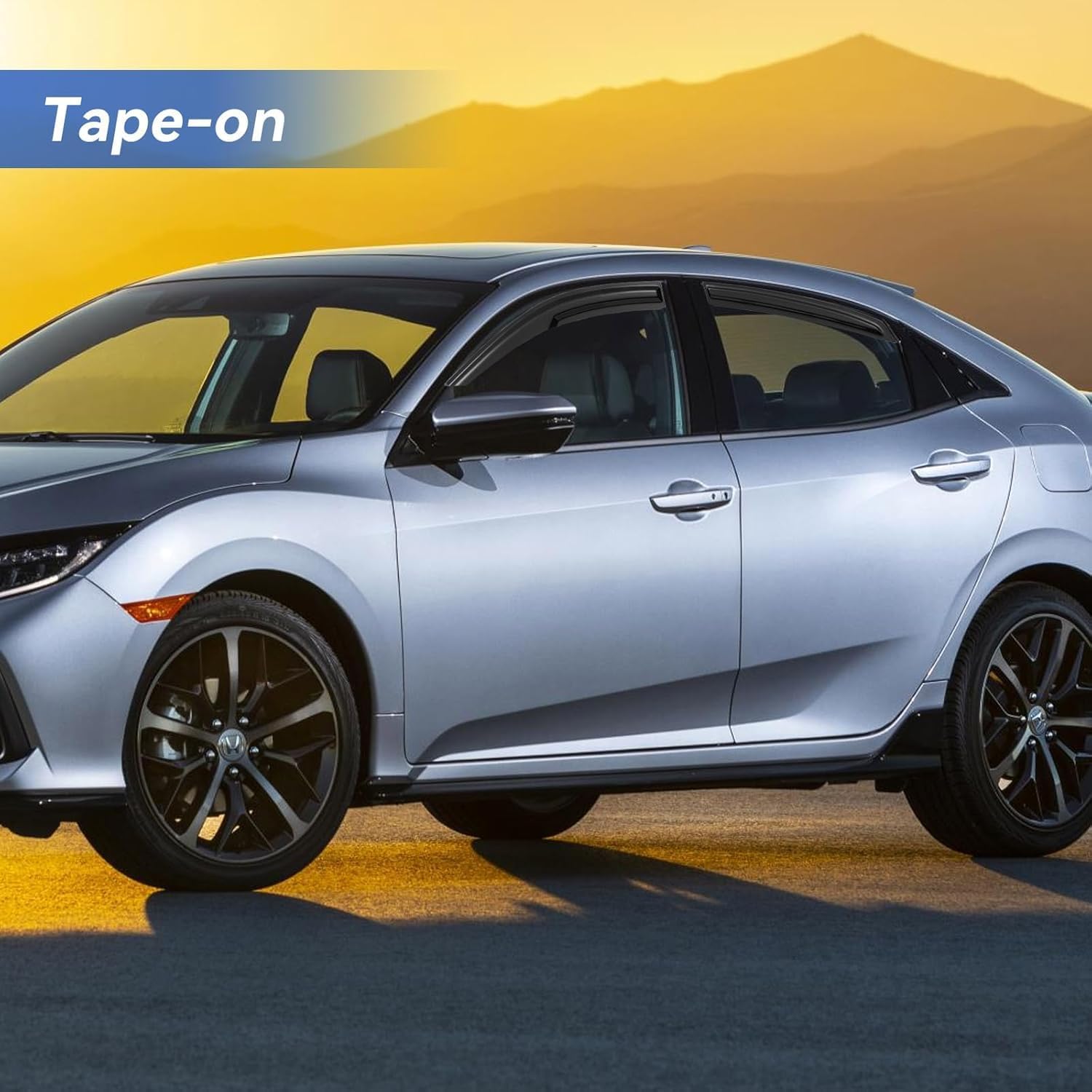 - ăPerfect FităYQAUTEC 4Pcs Out-channel Window Visors Rain Guards Shield fit for 2016 2017 2018 2019 2020 2021 16 17 18 19 20 21 Honda Civic Hatchback FK4 F7 FK8 5Dr Type-R, EX, EX-L, LX, Sport Touring, Side Window Vent Wind Deflectors Visors Shades. (Not For SedanïŒ