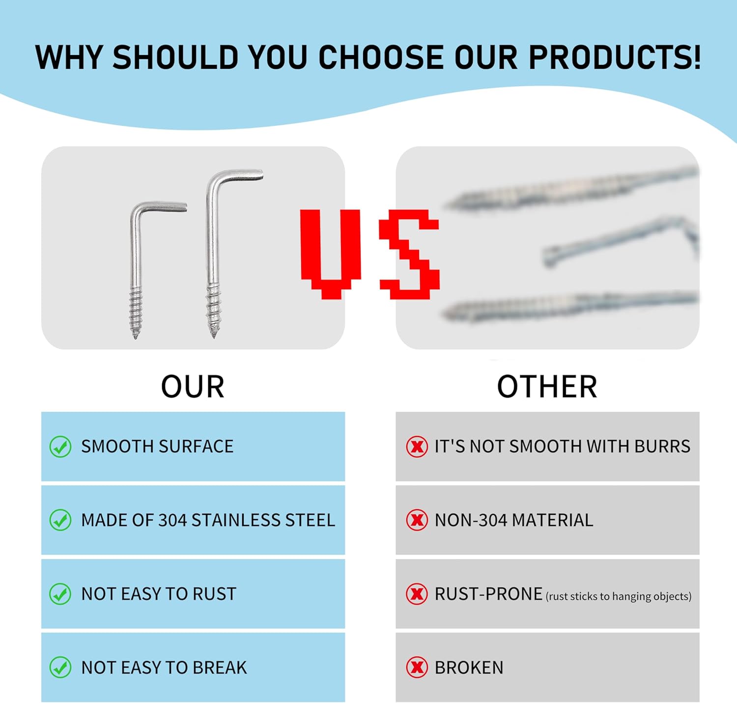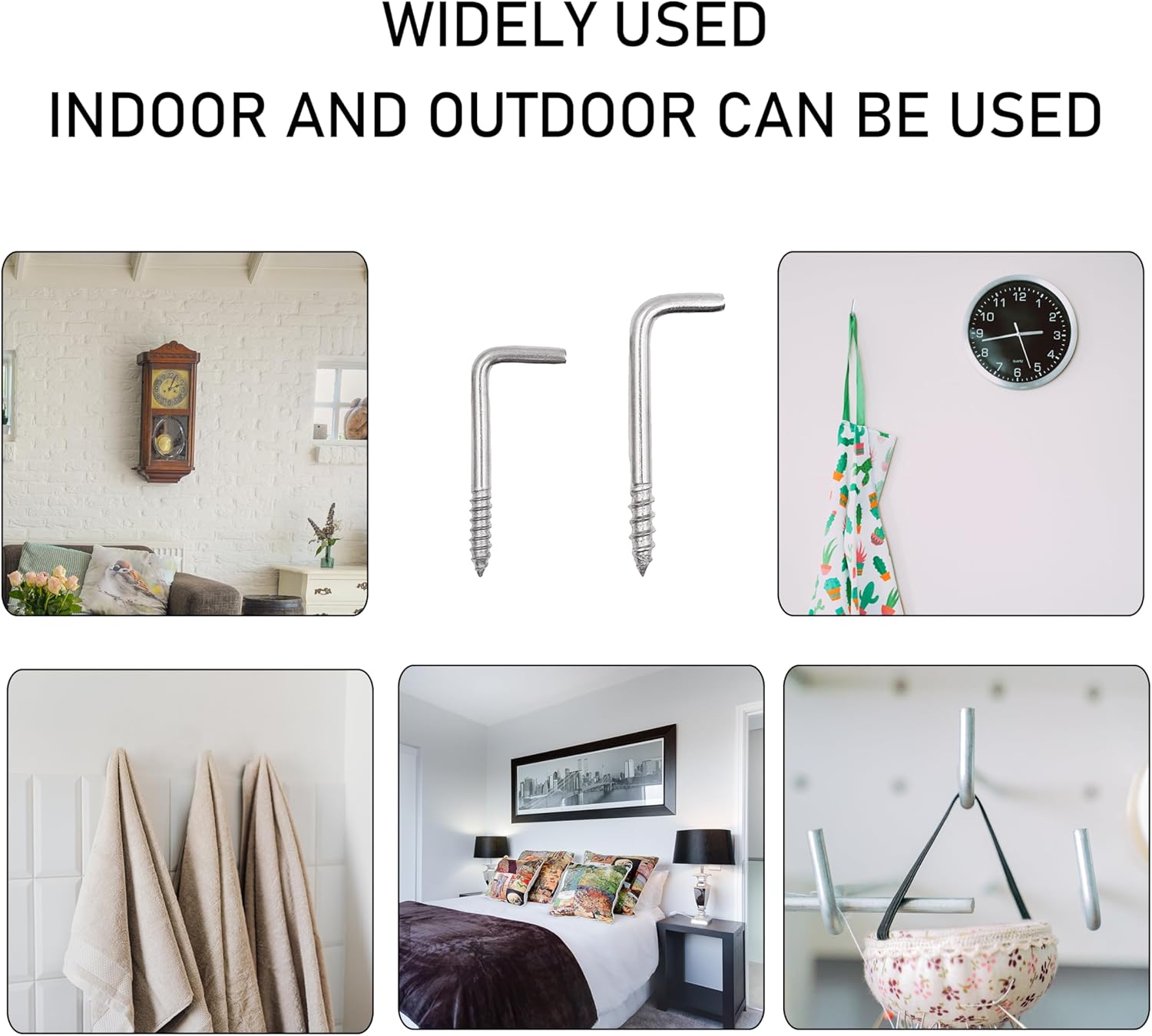 304 Stainless Steel 2-3/4 in Screw-in Hooks 20 Pcs,7 Shape Screw Hooks,Right Angle Medal Hooks l Shaped Screw in Hooks for Hanging