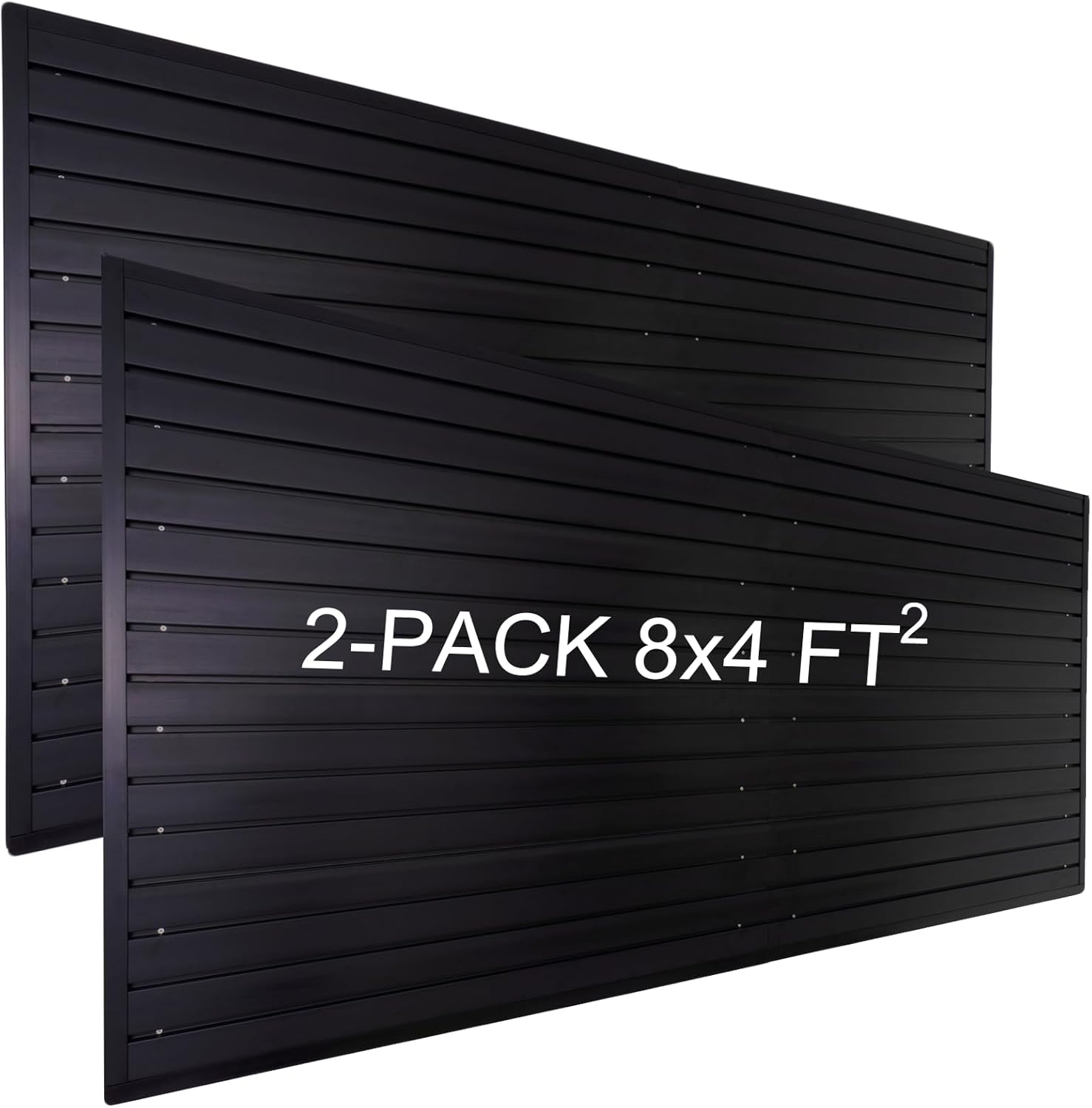 - 2 PACK SLAT WALL PANELS 4x8 FT : Our durable garage slat wall panel system includes 16pcs 4ft x 1ft slatwall panels, offering a coverage of 64 sqft. Whether used individually or in combination, these slat wall panelings allow you to create the perfect setup that suits your needs. If you need extra slat wall storage organizer space, you can effortlessly expand and customize your ideal configuration by adding more garage slatwall panels. Meet evolving needs with personalized storage flexibility.