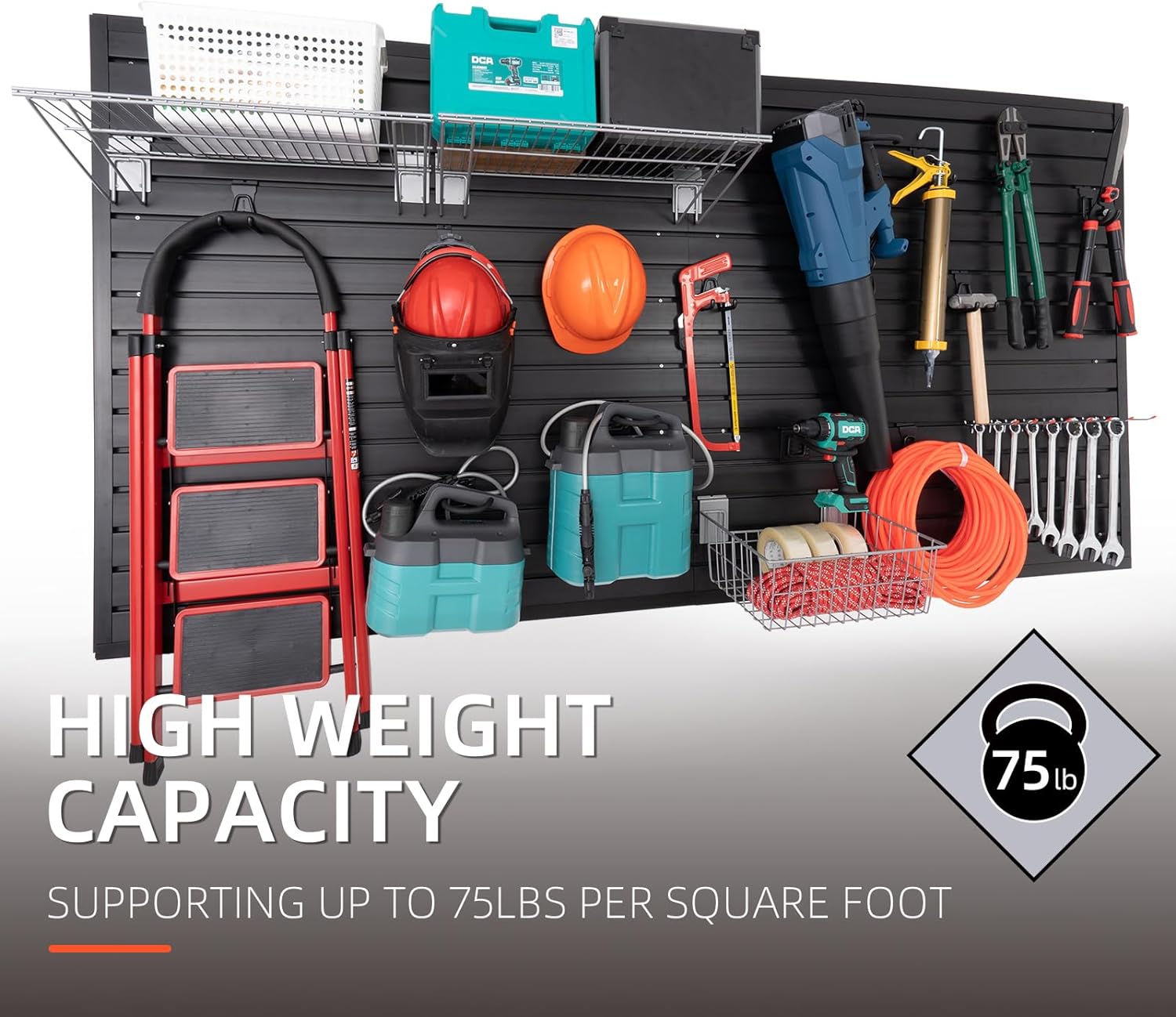 - MAKE FULL USE OF YOUR SPACE: Unleash the true potential of your garage wall organizer for tools with the garage slat wall panel. By making smart use of vertical wall space, you can revolutionize your garage into a seamlessly organized and efficient area. Bid farewell to a messy garage and welcome a meticulously optimized space that maximizes every inch available. Enjoy effortless access to your tools, equipment, and accessories, all while crafting a visually captivating environment.