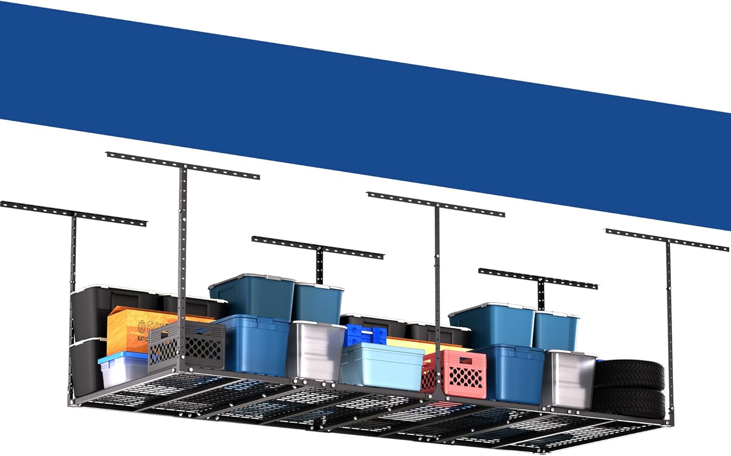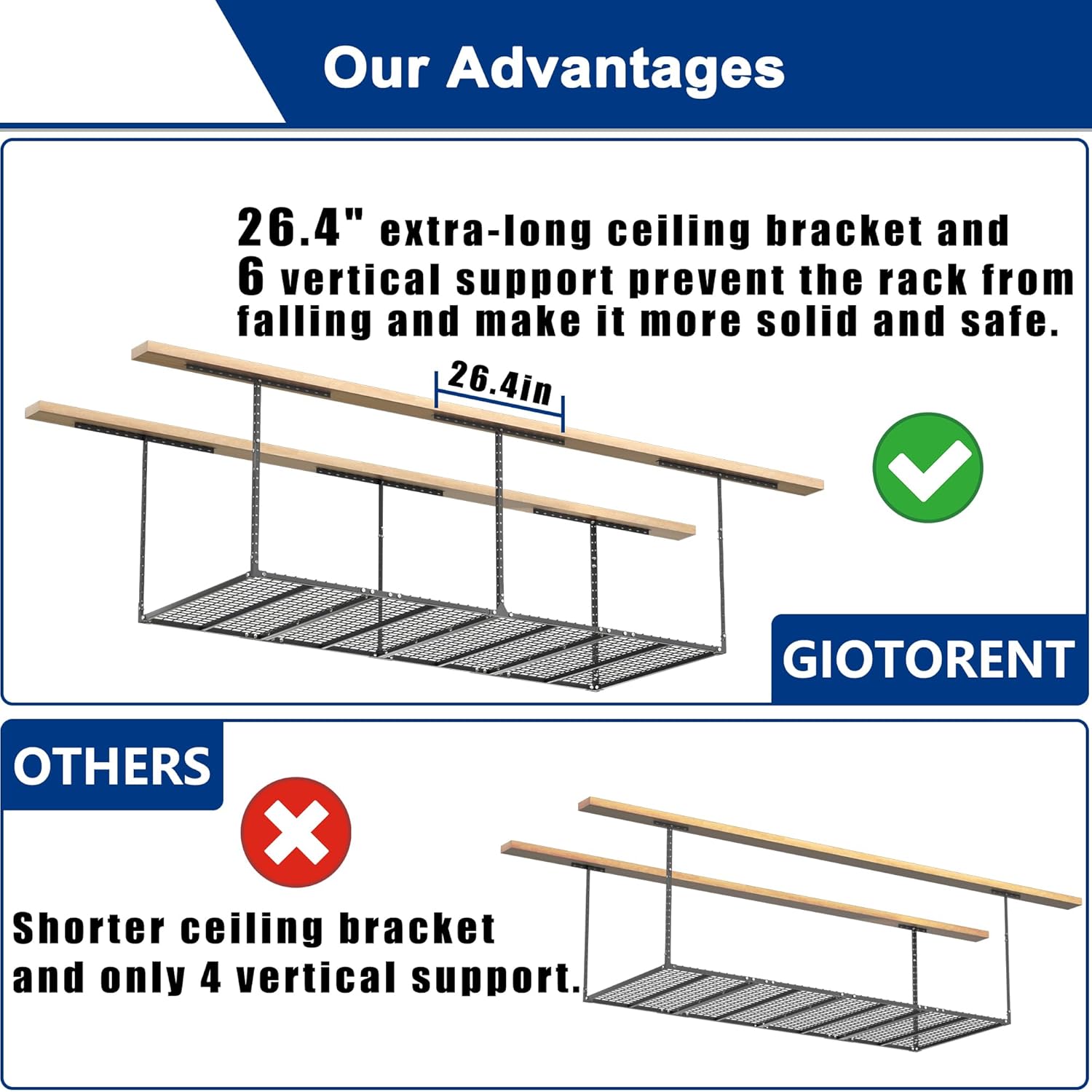 GIOTORENT 3x8FT Heavy Duty Overhead Garage Storage Rack - Adjustable Ceiling Shelving with 600lbs Weight Capacity, Metal Garage Organization System, Black