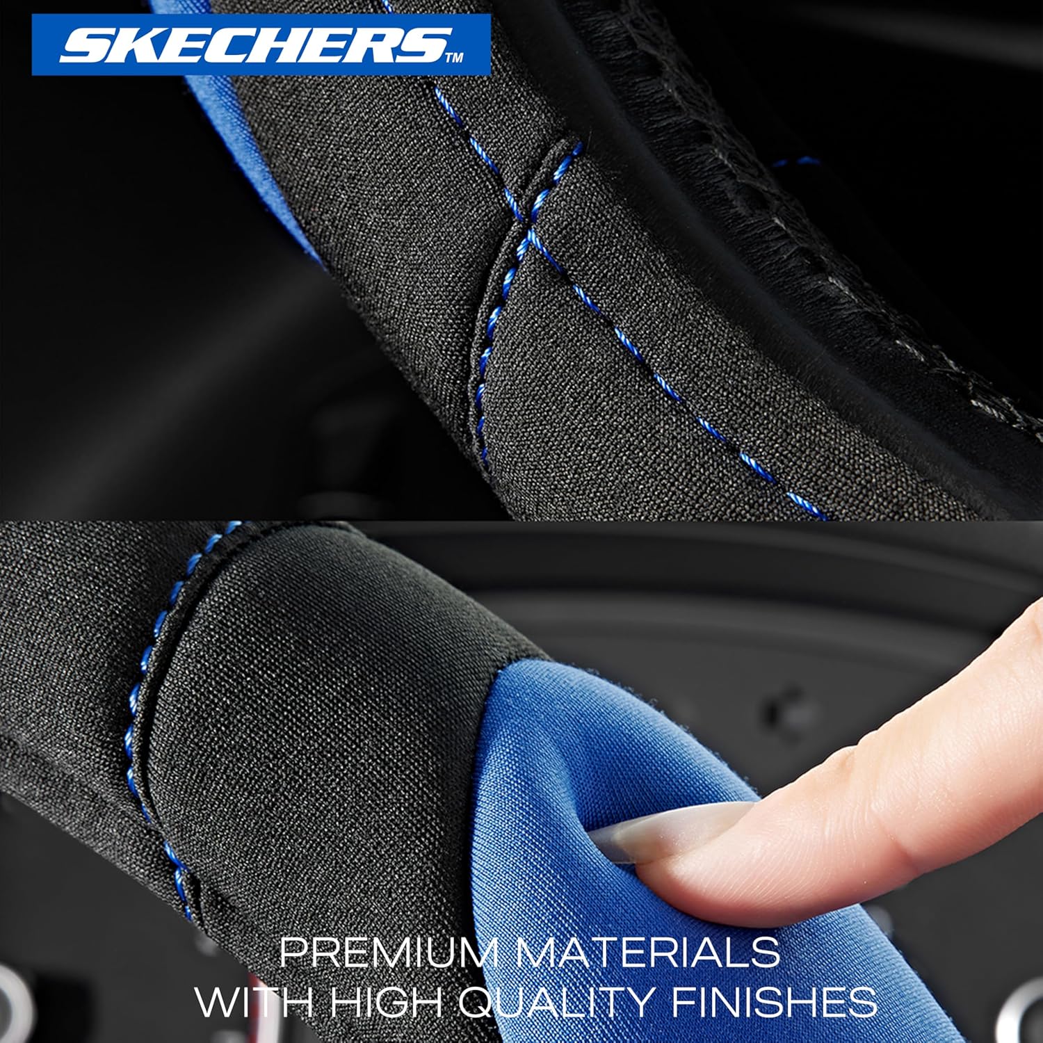 Skechers Steering Wheel Cover, Memory Foam Car Steering Wheel Cover,14.5-15inch Anti-Slip Safety Comfortable Desgin, Universal Accessory for Diverse Cars, Truck,SUV (Black & Blue)