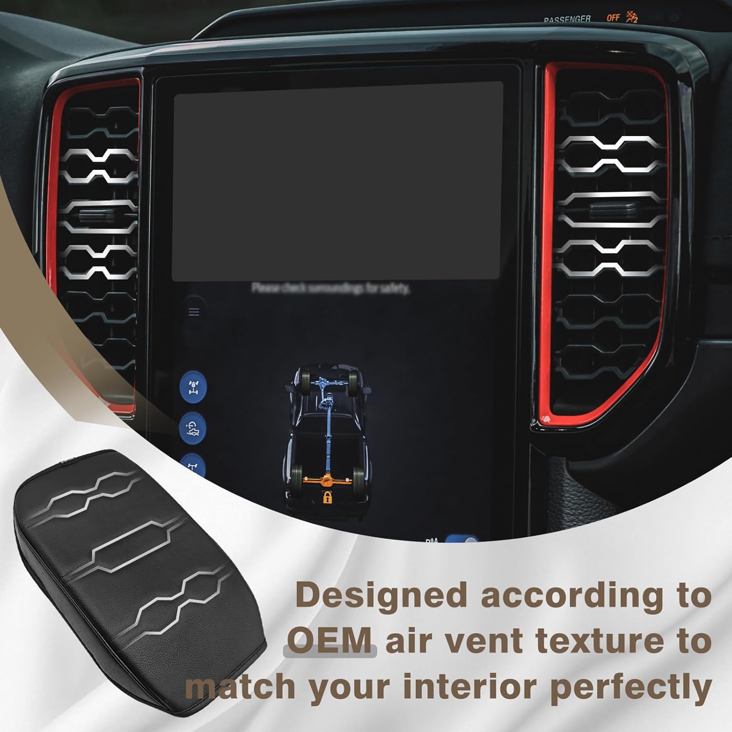 Muslogy Center Console Armrest Cover Compatible with Ford Ranger 2024 2025 Accessories Comfort Armrest Pad Cushion Box Lid Cover Vegan Leather Protector Regular Thick(Black/Black Stitching)