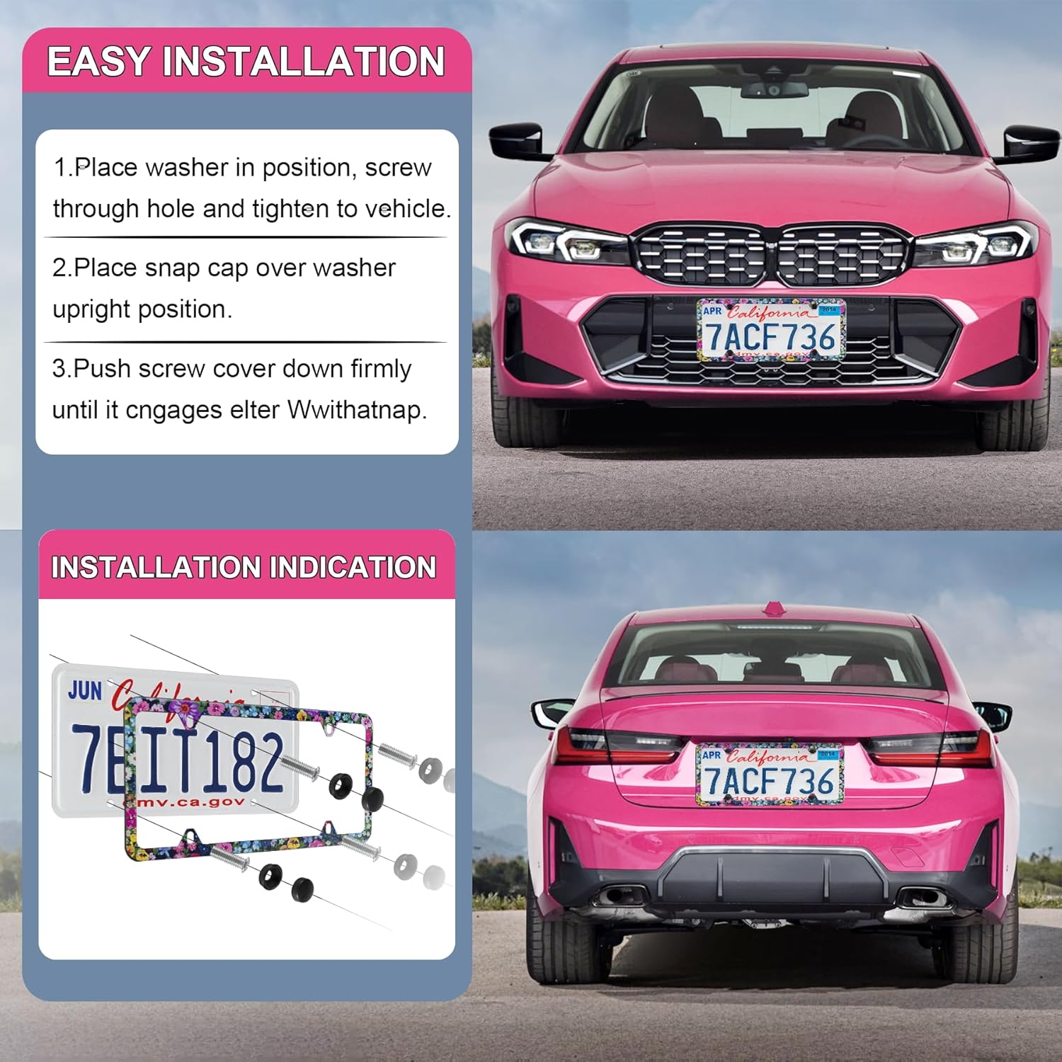 - 【Durable and Weather-Resistant】Crafted from high-quality stainless steel, these license plate frames resist rust, corrosion, wear, water, and high temperatures. The 1.2mm thick powder coating ensures they are fade and chip-resistant, maintaining durability and a stylish appearance in all weather conditions.