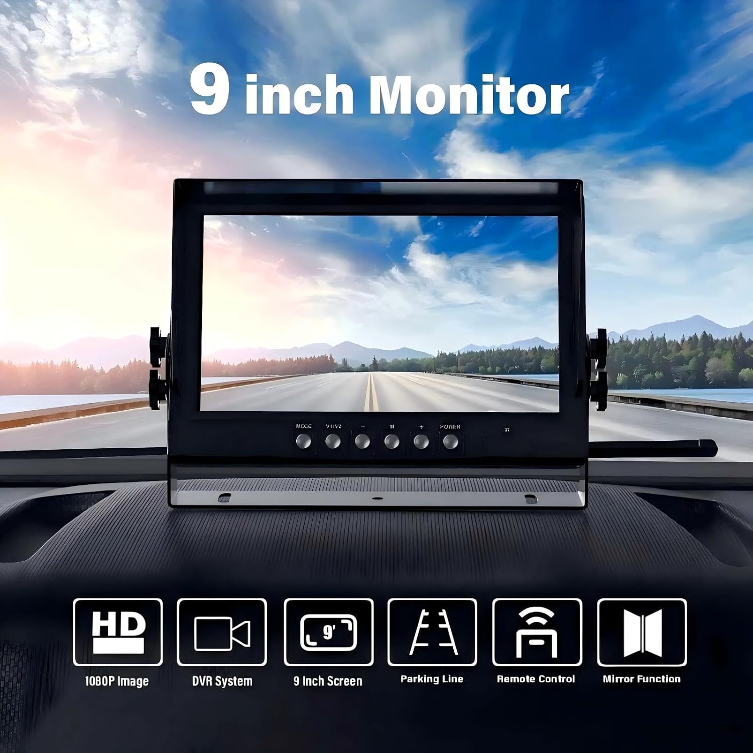 EVERSECU Car Backup Cameras System with 9'' Quad Split Monitor for RV Trailer Semi Truck Camper Bus & 4 AHD 1080P Rear&Side View Cameras with DVR Record Function Night Vision IP69 Waterproof