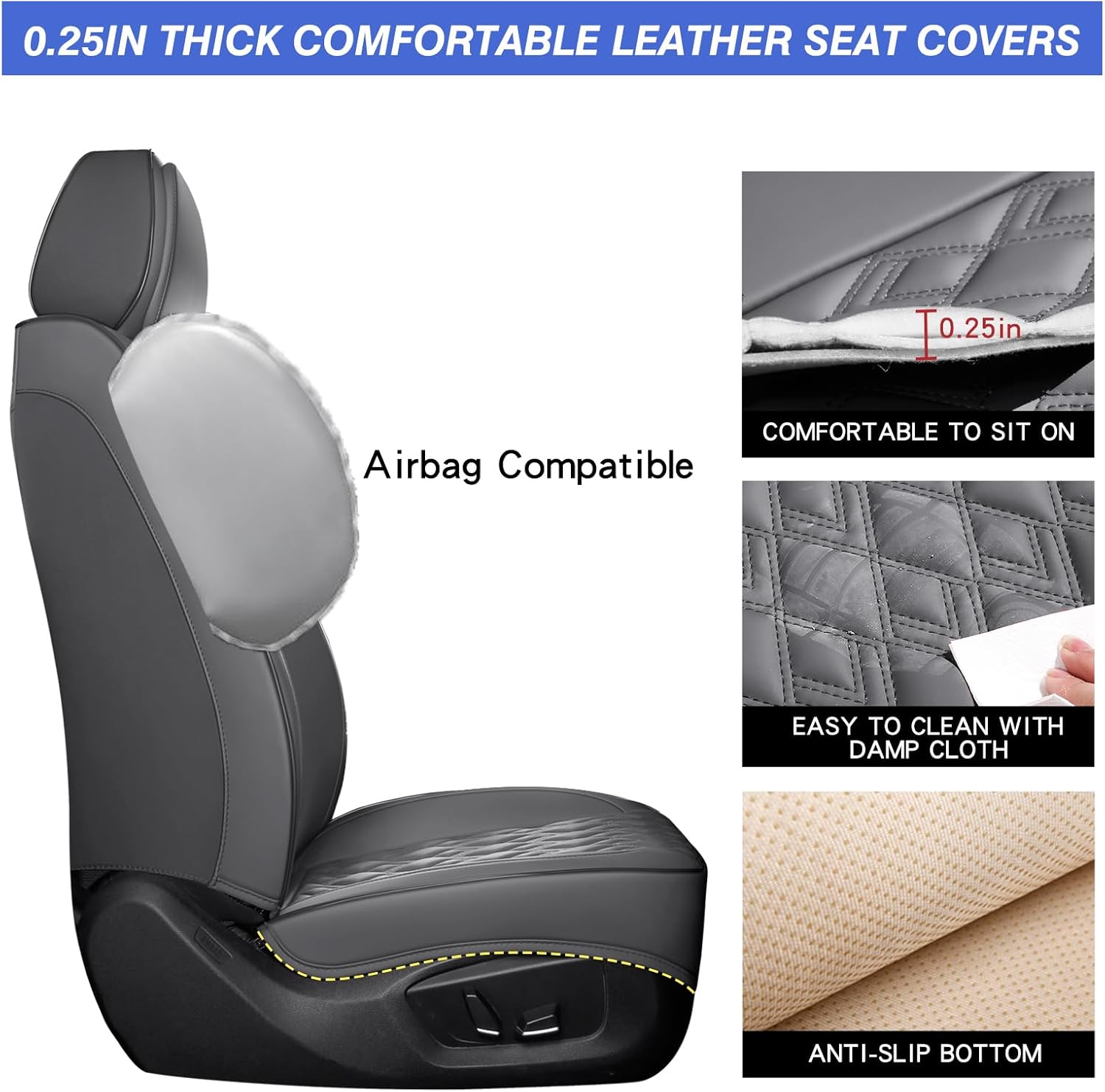 - â¨ULTIMATE SEAT PROTECTOON:Shield factory seats from scratches, UV rays, pet damage, and wear. Tough, fade-resistant synthetic leather preserves your carâs resale value while built-in airbag slots ensure 100% safety compatibility.