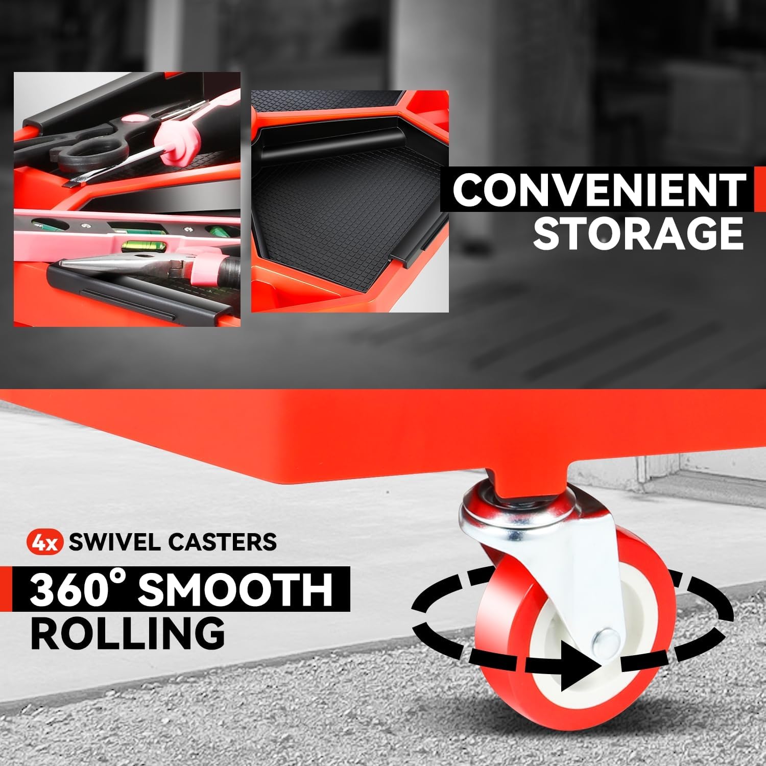- ăEnhanced MobilityăEquipped with 4 swivel casters, this mechanic stool provides smooth and precise maneuverability around your garage, streamlining your work process.